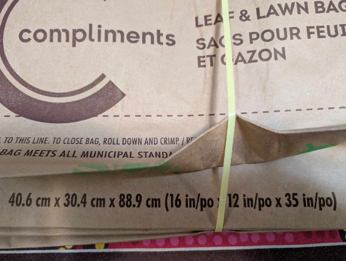 Compliments Leaf & Lawn Bags. Pkg of 5. They are two tough plies and measure 40.6 cm x 30.4 cm x 88.9 cm (16 in x 12 in x 35 in) Pick up only, Beltline neighbourhood, FCFS. I'm flexible with pick up times but please don't no-show. Also, please take a look at my other listings. Thanks.