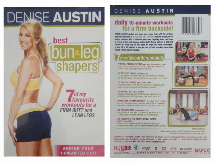 Giving away a Denise Austin workout DVD, "Best Bun & Leg Shapers"! Get ready for daily 10-minute workouts to firm your backside. This DVD includes 7 of my favourite workouts for a firm butt and lean legs. Full screen presentation with Dolby stereo surround sound.