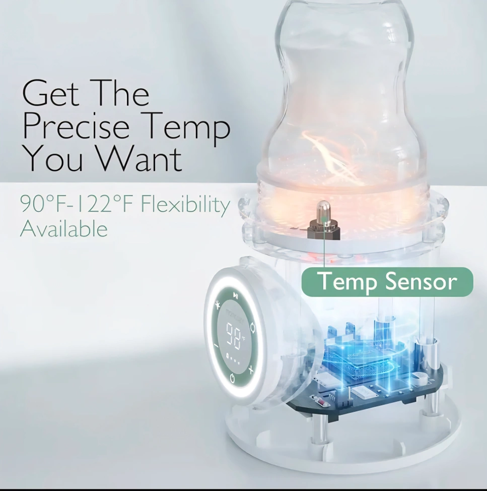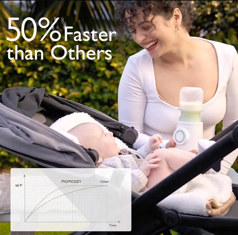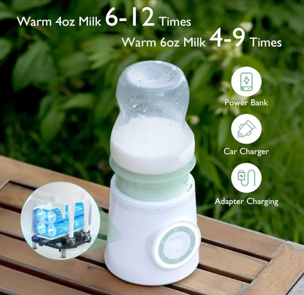 Keep your baby's milk warm on the go with this Momcozy MW03 portable bottle warmer! It's designed to warm 4oz milk 6-12 times or 6oz milk 4-9 times. The precise temperature control ranges from 90°F to 122°F, and it features a temp sensor and double sealing to prevent leaks. It also includes various adapters for most bottle brands like Medela, Dr. Brown's, Philips AVENT, Tommee Tippee, Boon, and Comotomo -Open Box