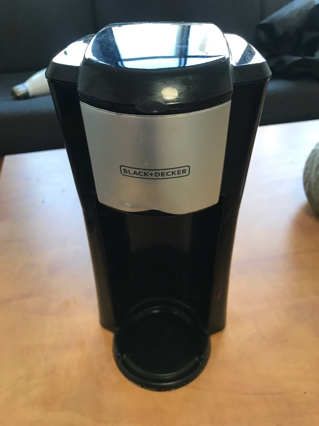 Selling a Black+Decker single serve coffee maker! It's in good condition and perfect for a quick cup of coffee in the morning. It is black and has a silver accent. -AI I used it for an year but moved to different coffee machine. Its sanitised and ready to use :) Please take it ASAP!