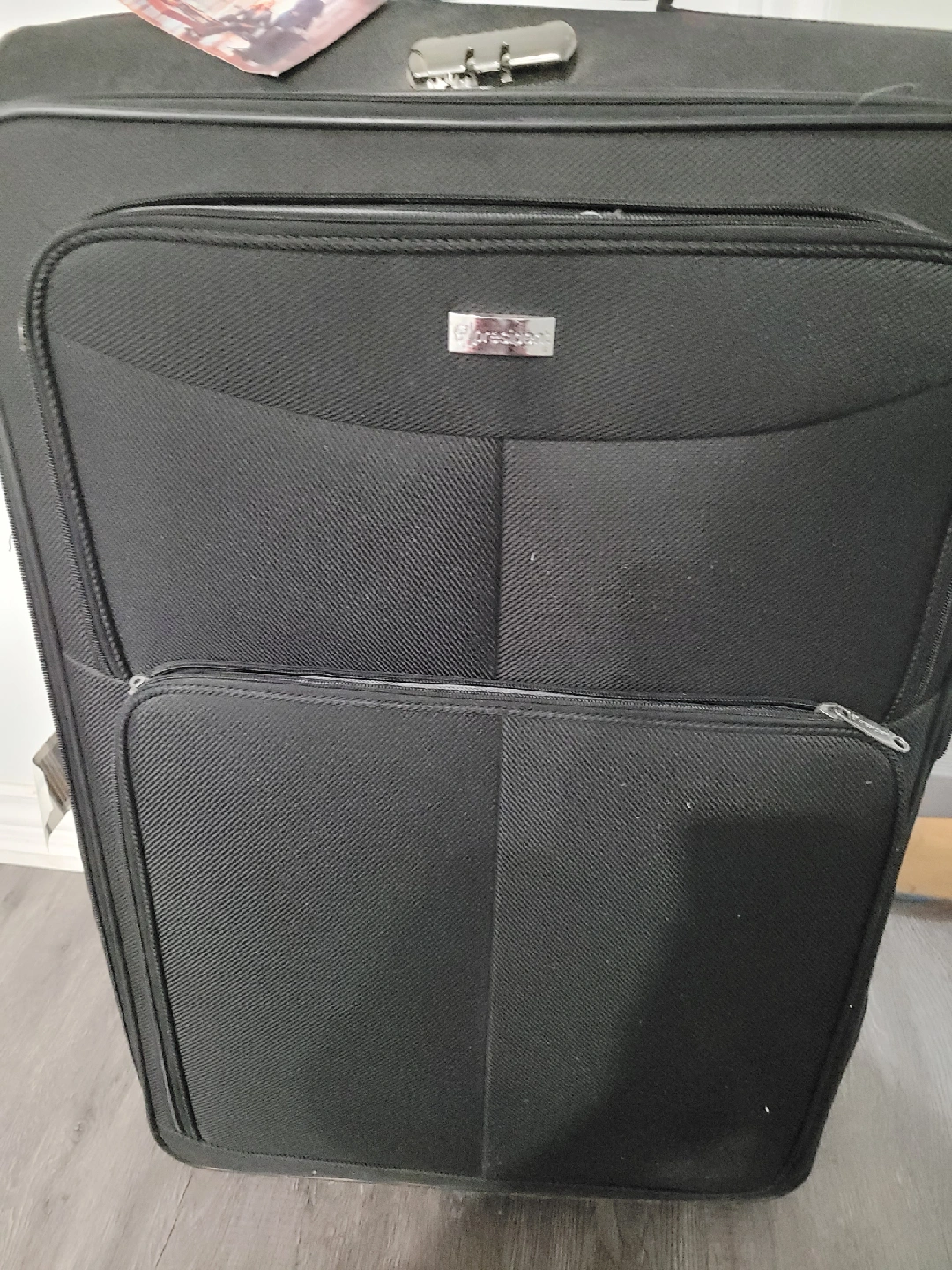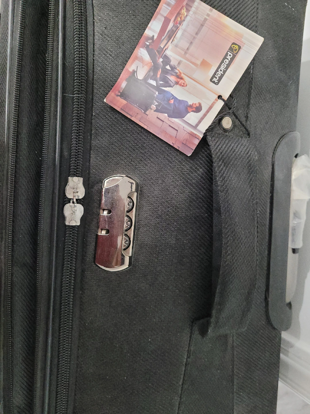 Selling a black large sized luggage suitcase from President. Zipper pulls are broken. It's in excellent condition and can be used to store large items. plz replace zipper runners.