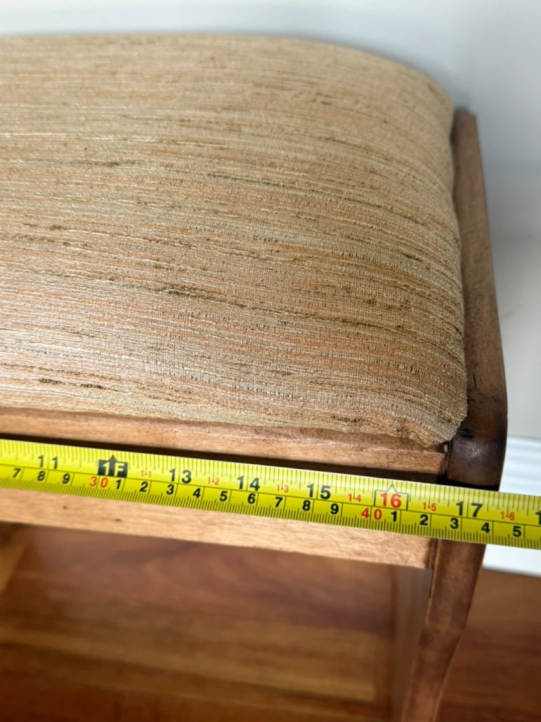 75Selling this lovely refreshed wood bench with reupholstered seat. Sanded and stained Pecan with Fusion SFO (Cappuccino). Solid, stable and sturdy chair that’s in great condition. Please see photos for size & condition. Cash and pick up only in W. Hillhurst NW. Thanks for looking!