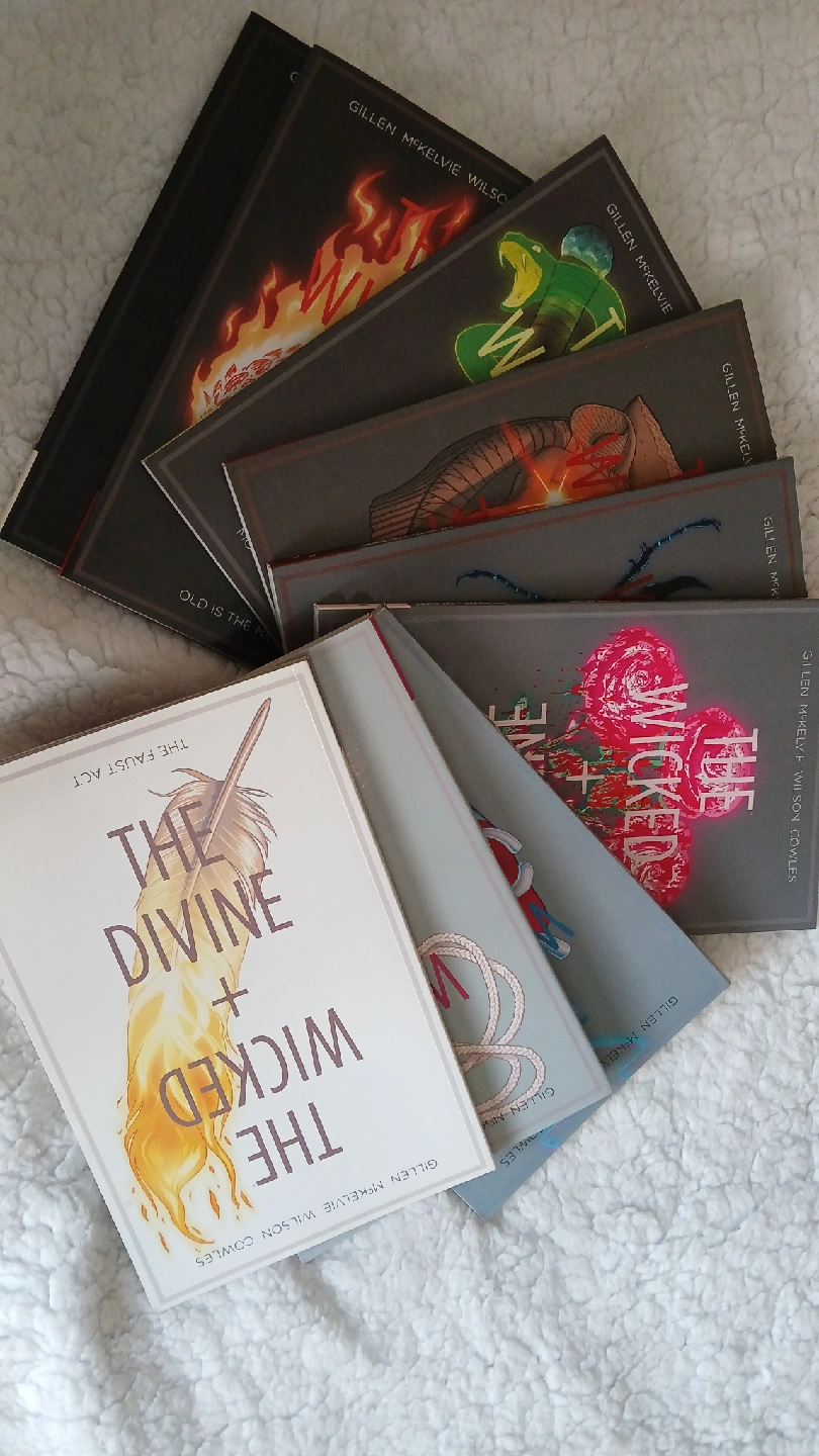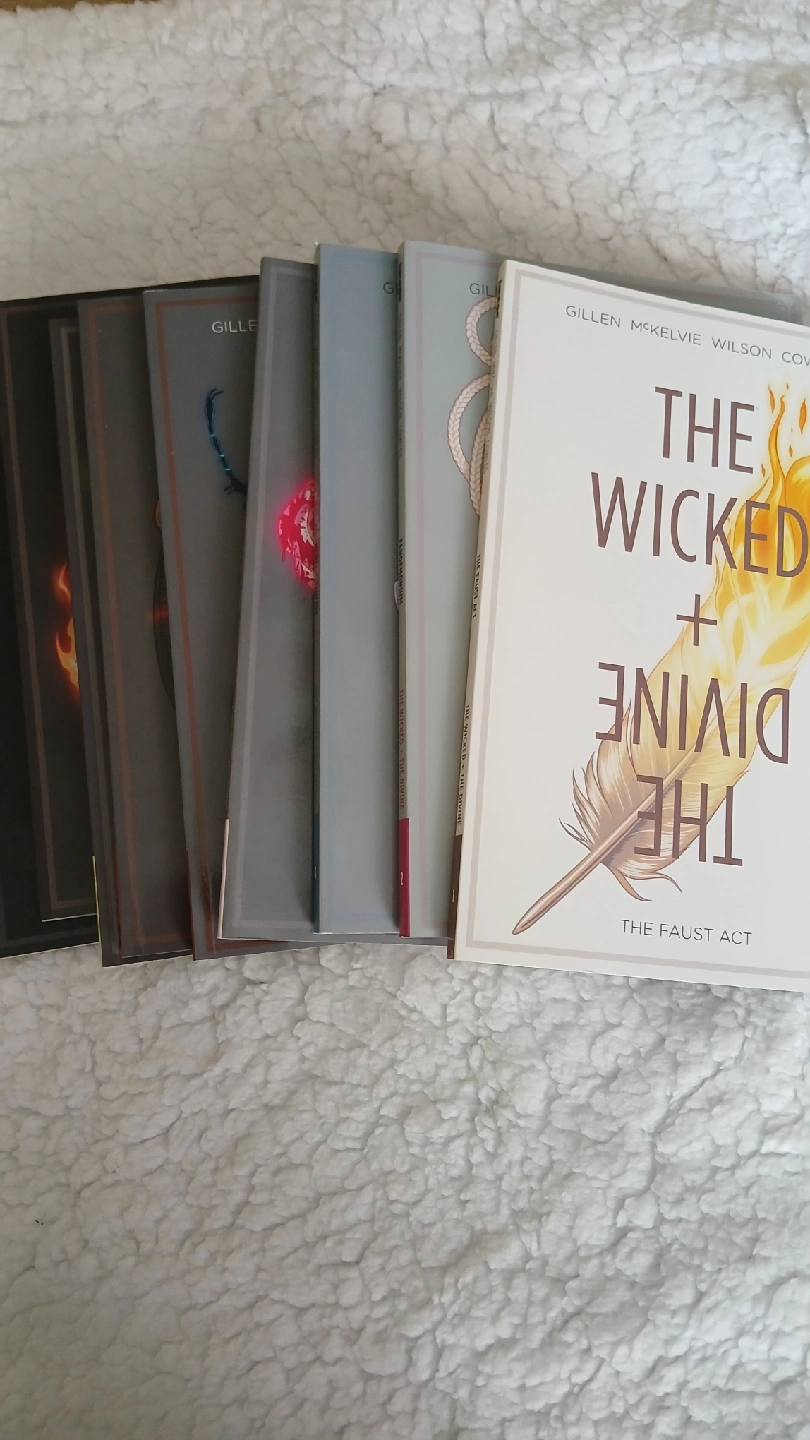 collection of the series The Wicked & The Devine. 9 books . they range from $9.99 to $17.99 each. Beautiful glossy pages and all in excellent condition. no damage or folded edges. all nine books for $20.00. porch pickup at Dufferin and Bloor st