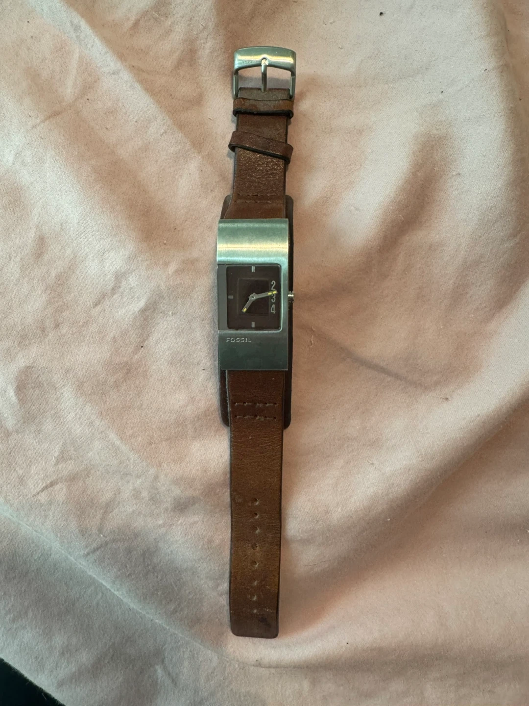 Selling a Fossil watch with a brown leather strap. This is model JR-9675. GUC