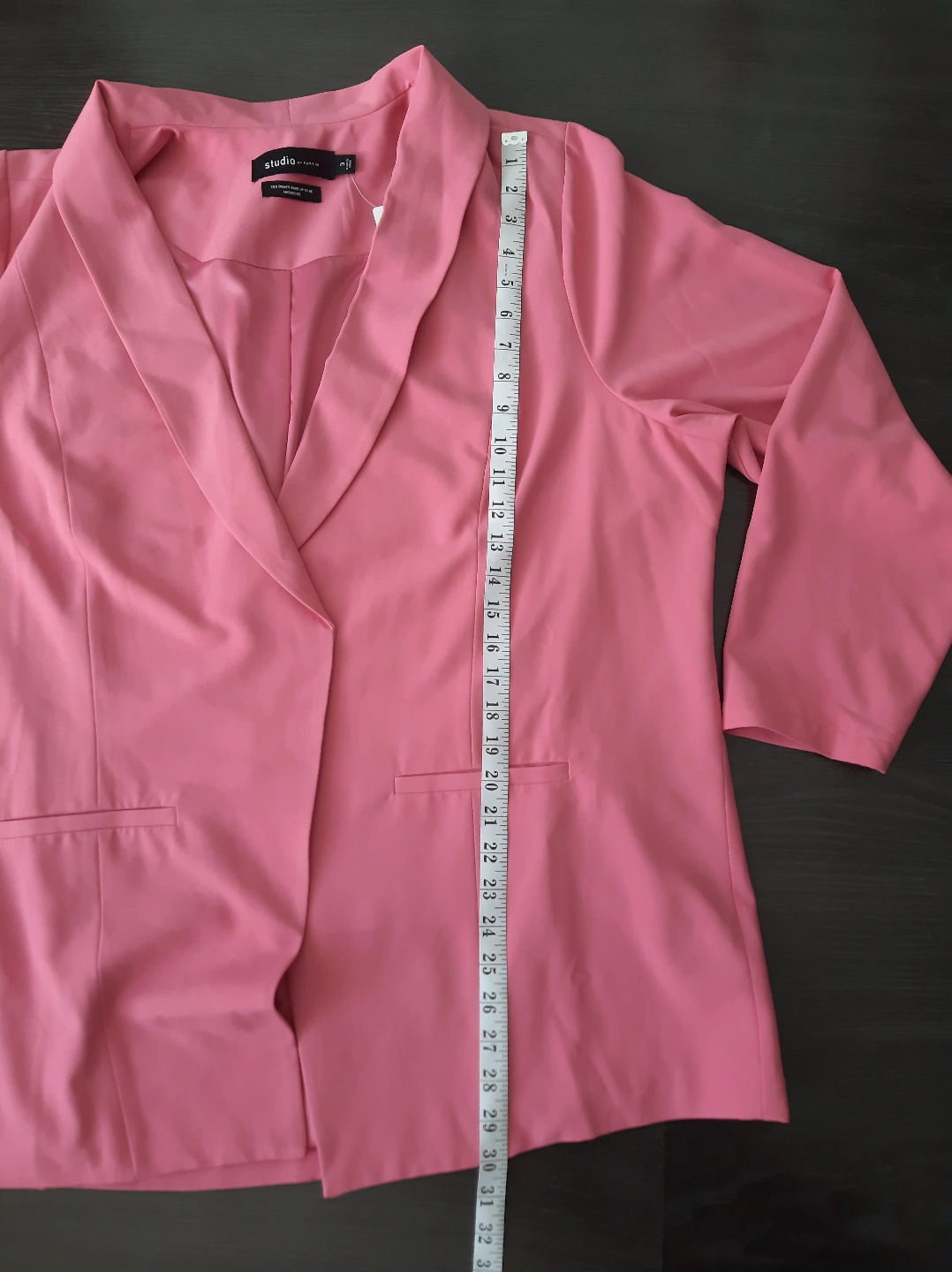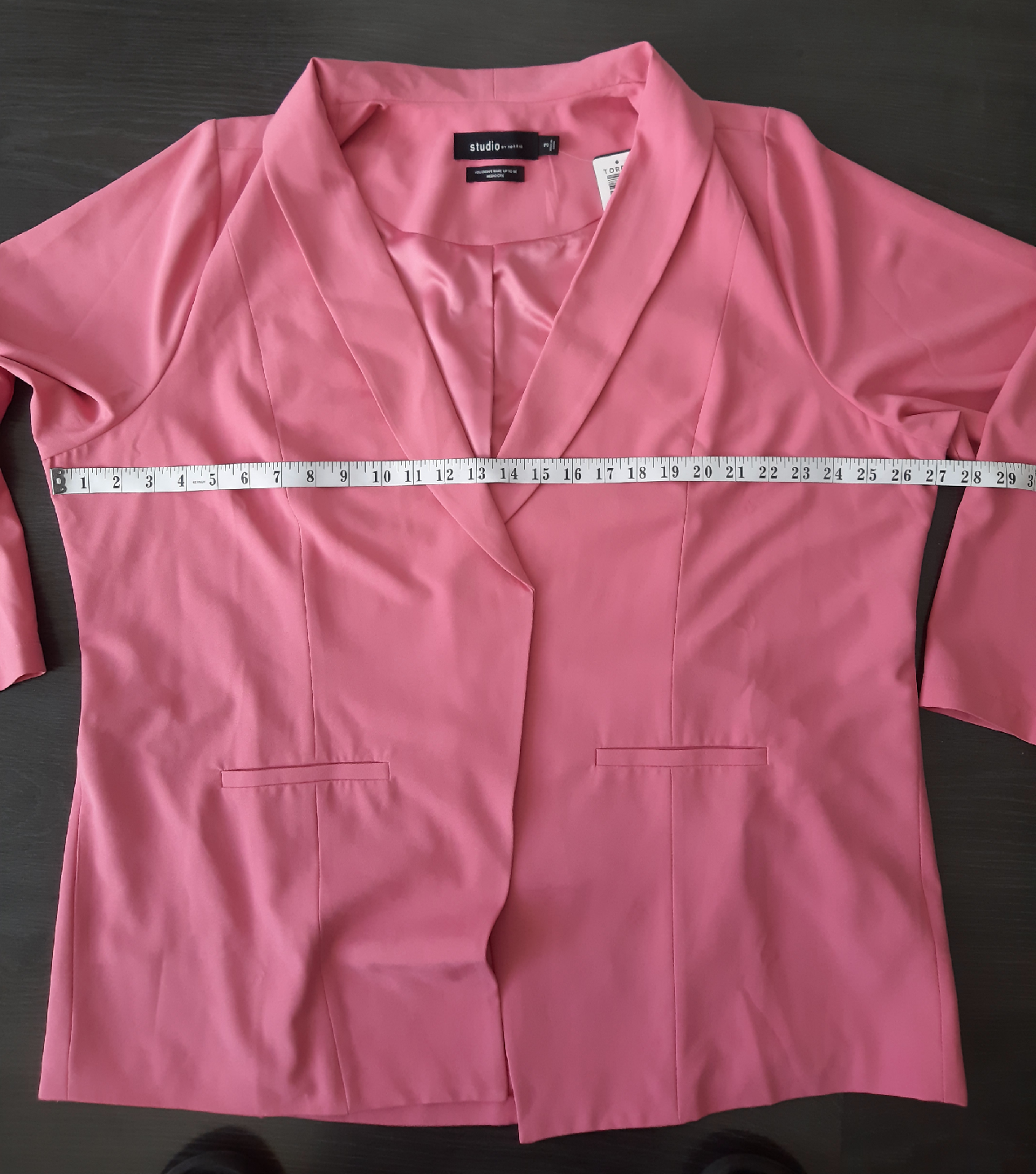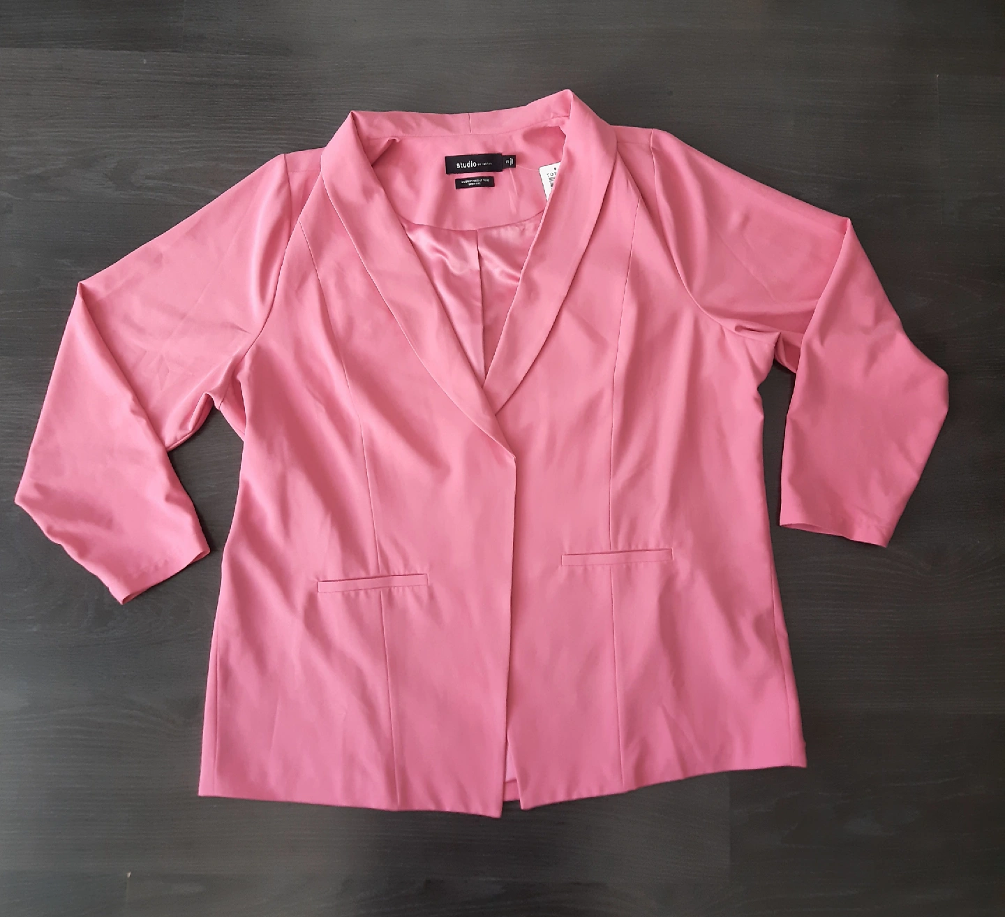 Studio by TORRID blazer in a lovely pink colour! The blazer is a size 3X. As shown in the pictures, the blazer measures approximately 29 inches across the front. Perfect for adding a pop of colour to your wardrobe