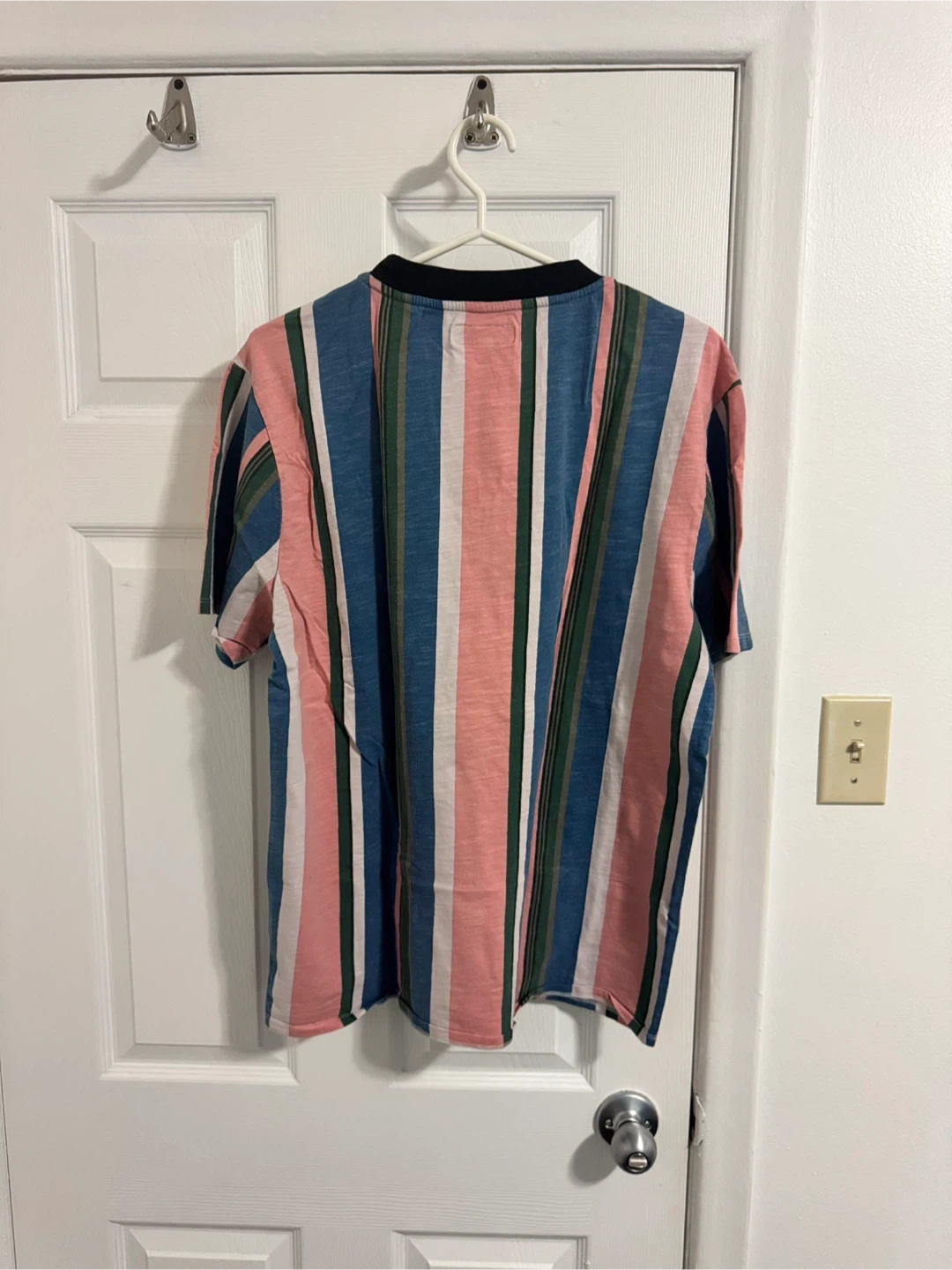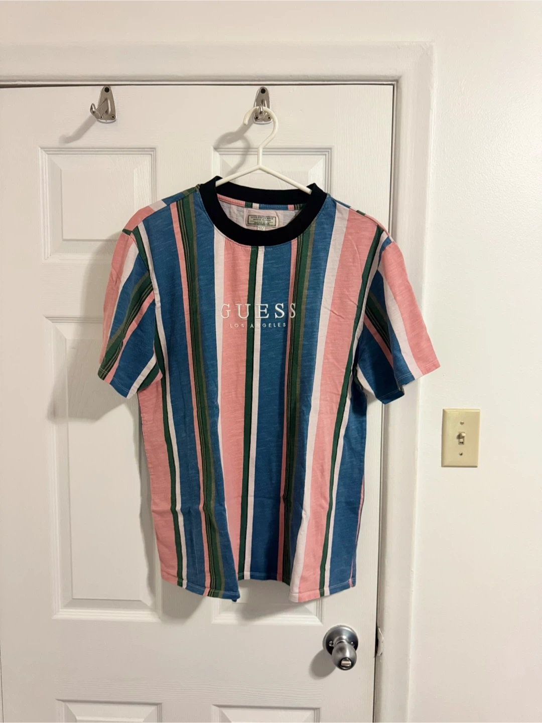 360Selling a Guess Jeans tee in size large! It features a cool striped pattern with pink, blue, green, and white. The collar is black, and there's a Guess logo on the front. It's in great shape and ready for a new home! Guess Pink Urban Outfitters Capsule Sayer (Large) Condition: excellent to new condition. No issue Price: $55 cash or best offer 📍 Pick-Up Location: 807 Brimley Road, Scarborough 📦 Shipping: Available via Canada Post 🤝 Meet-Ups: Can be arranged along Line 1 or Line 2, downtown, or nearby areas. I usually schedule meet-ups on Sundays. ✨ Check out my other listings! Happy shopping!