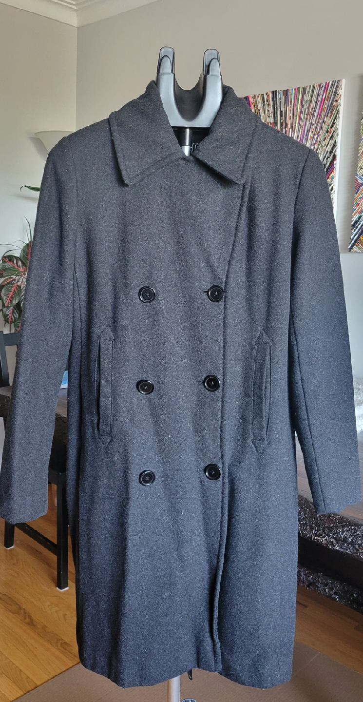 Selling a Jacob wool coat in size small. It's a stylish grey colour and in good condition. Perfect for fall or winter!