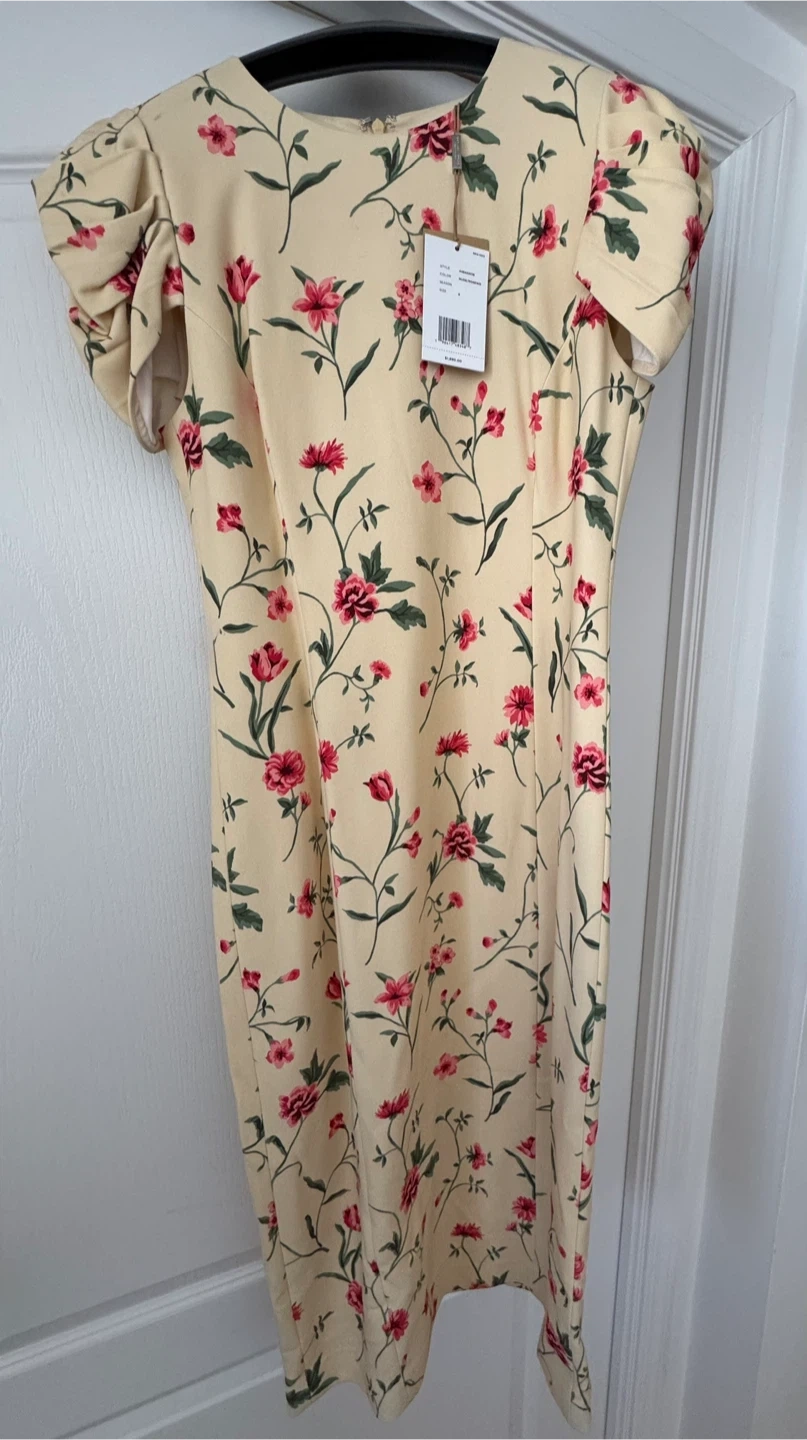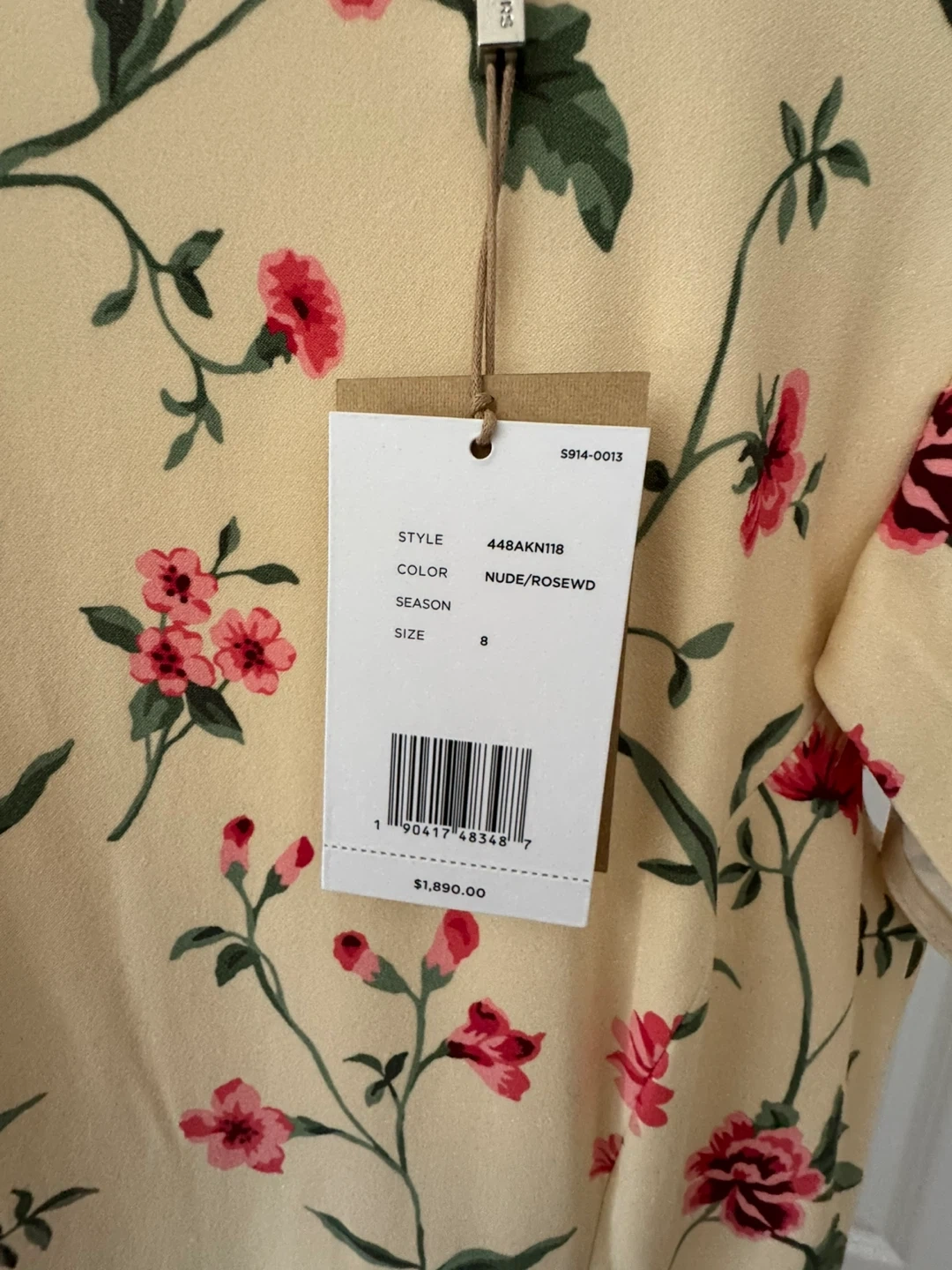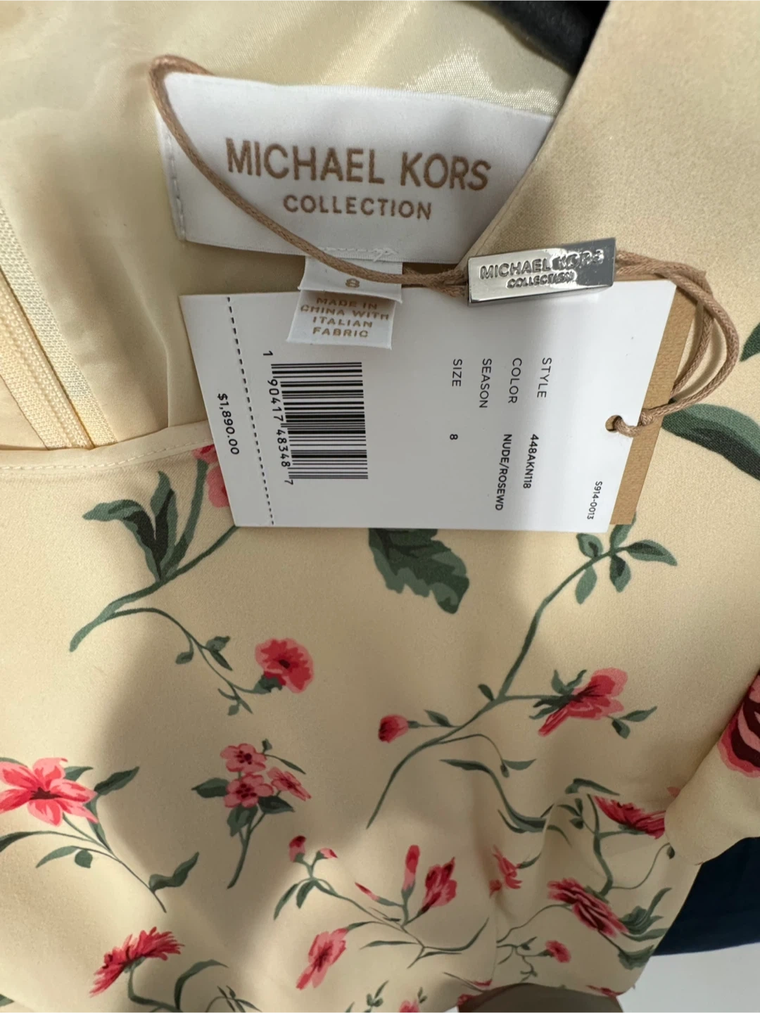 138This is a beautiful Michael Kors Collection dress in a size 8. The style number is 448AKN118 and the colour is nude/rosewd. It features a lovely floral pattern. Originally bought for $1,890.00!