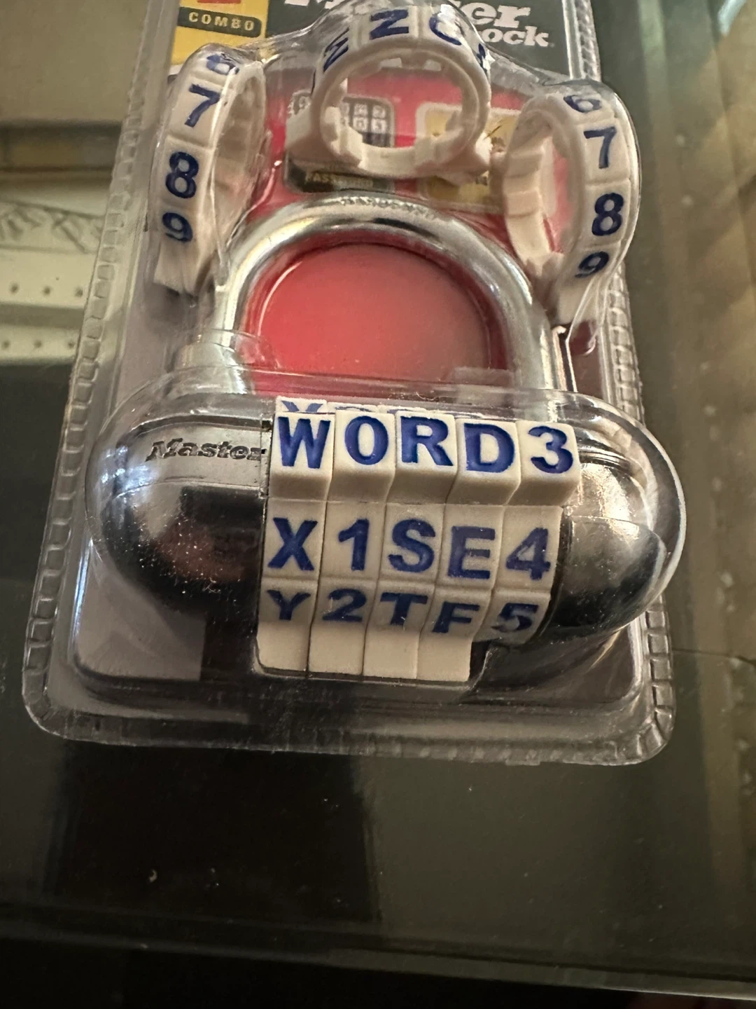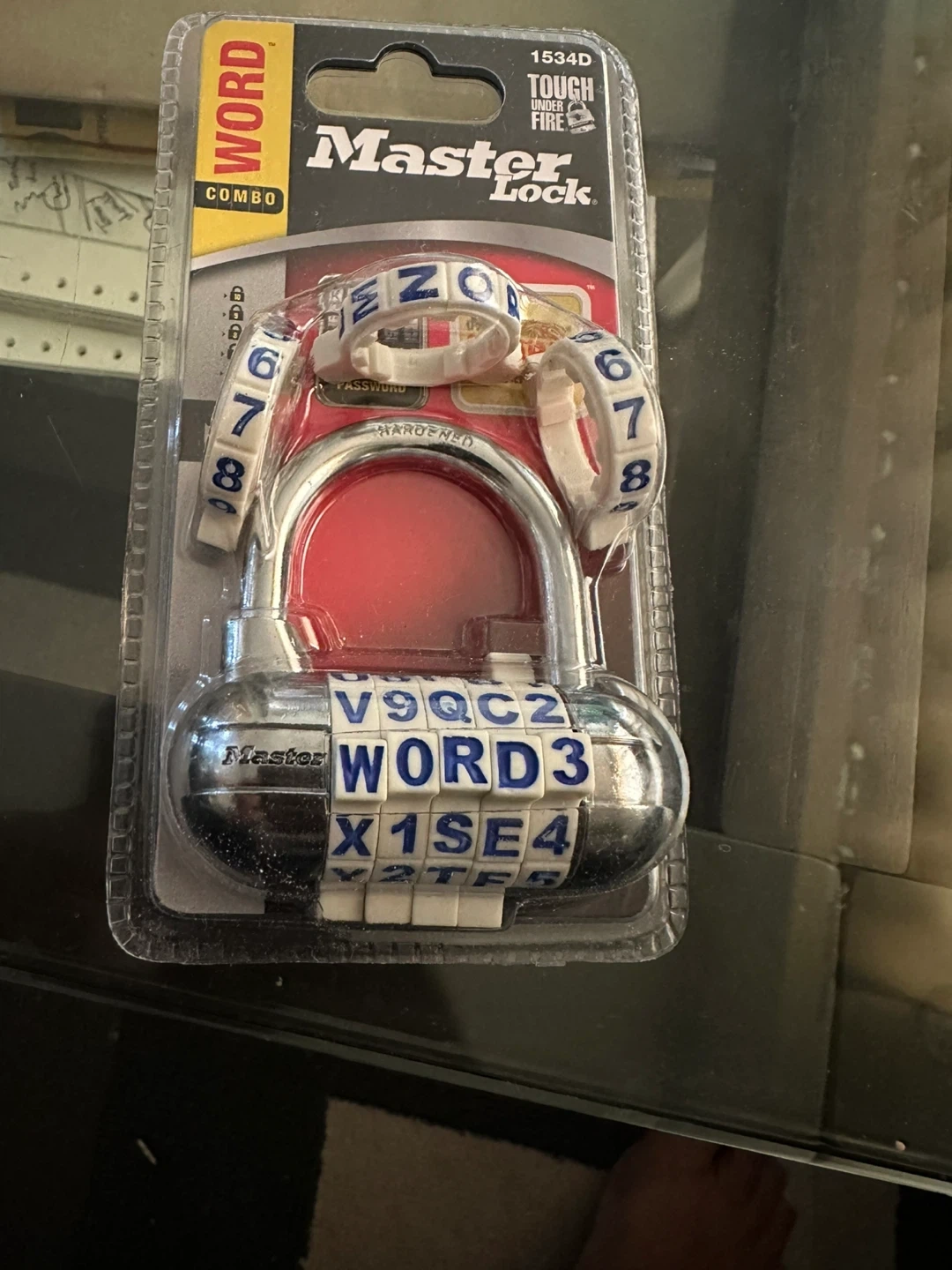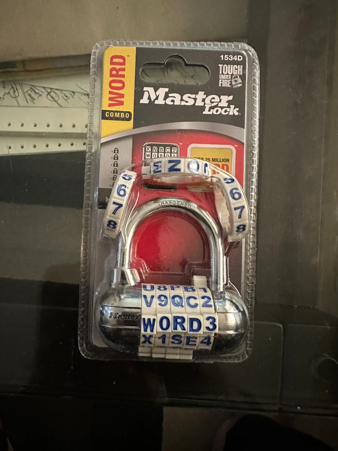 Selling a brand new Master Lock Word Combo Lock, still sealed in its original packaging! This lock features a unique word combination system, making it a fun and secure way to protect your belongings. It's tough under fire and has an anti-shim mechanism for added security
