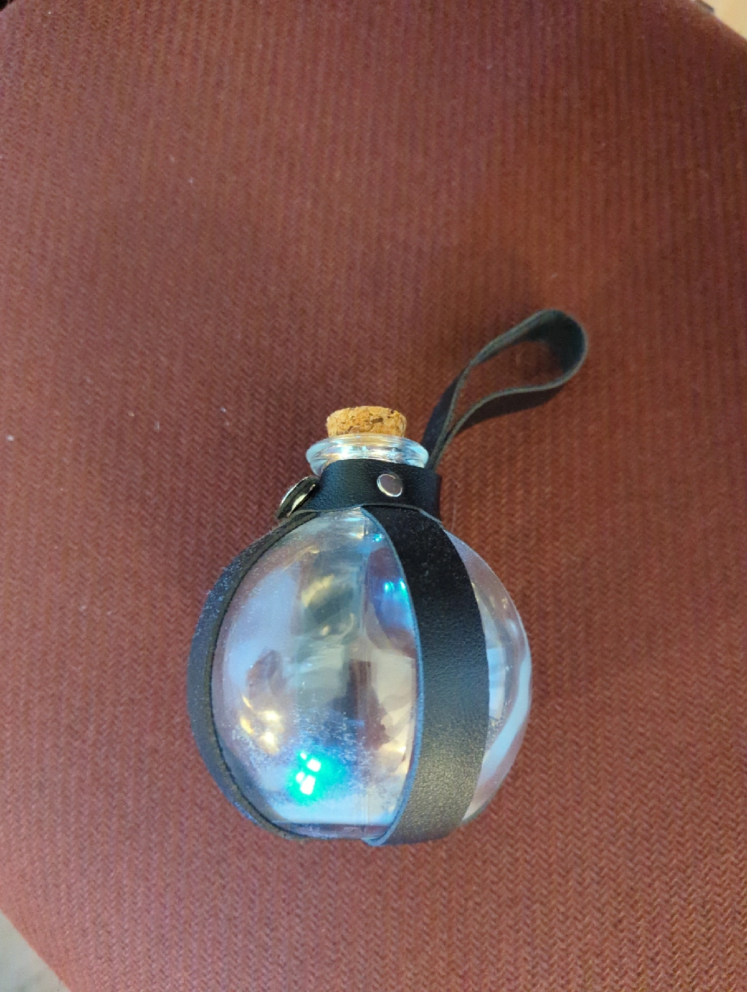 Also comes with a potion bottle which can be worn with any low hanging belt .