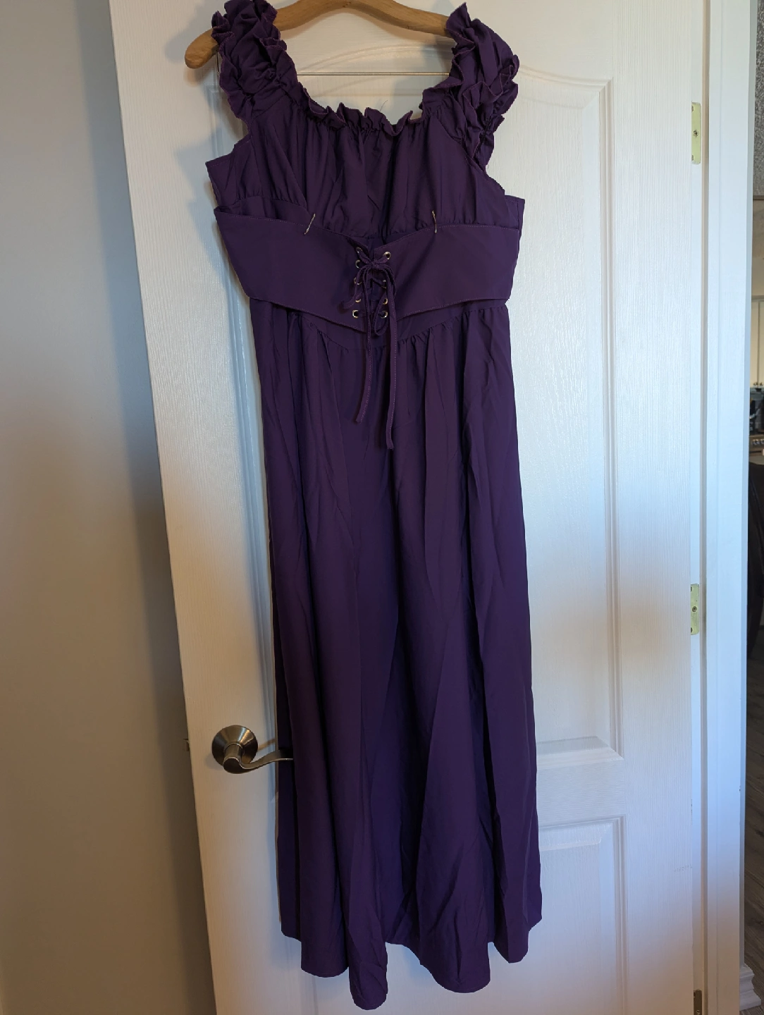 Selling a purple Medieval or Renaissance style dress with a corset-style bodice! It features a very long skirt which can easily be cut shorter. Looks great on.