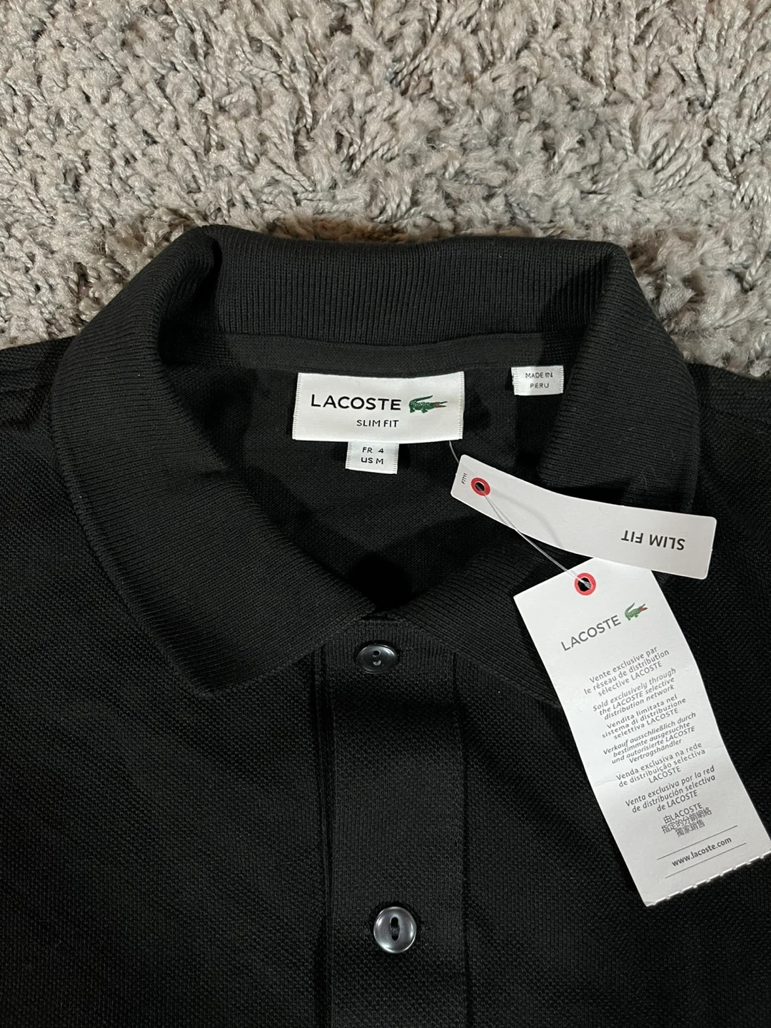 I'm selling a brand new Lacoste polo shirt! It's a slim fit, size 4 which is a US medium. The colour is black and it's made in Peru