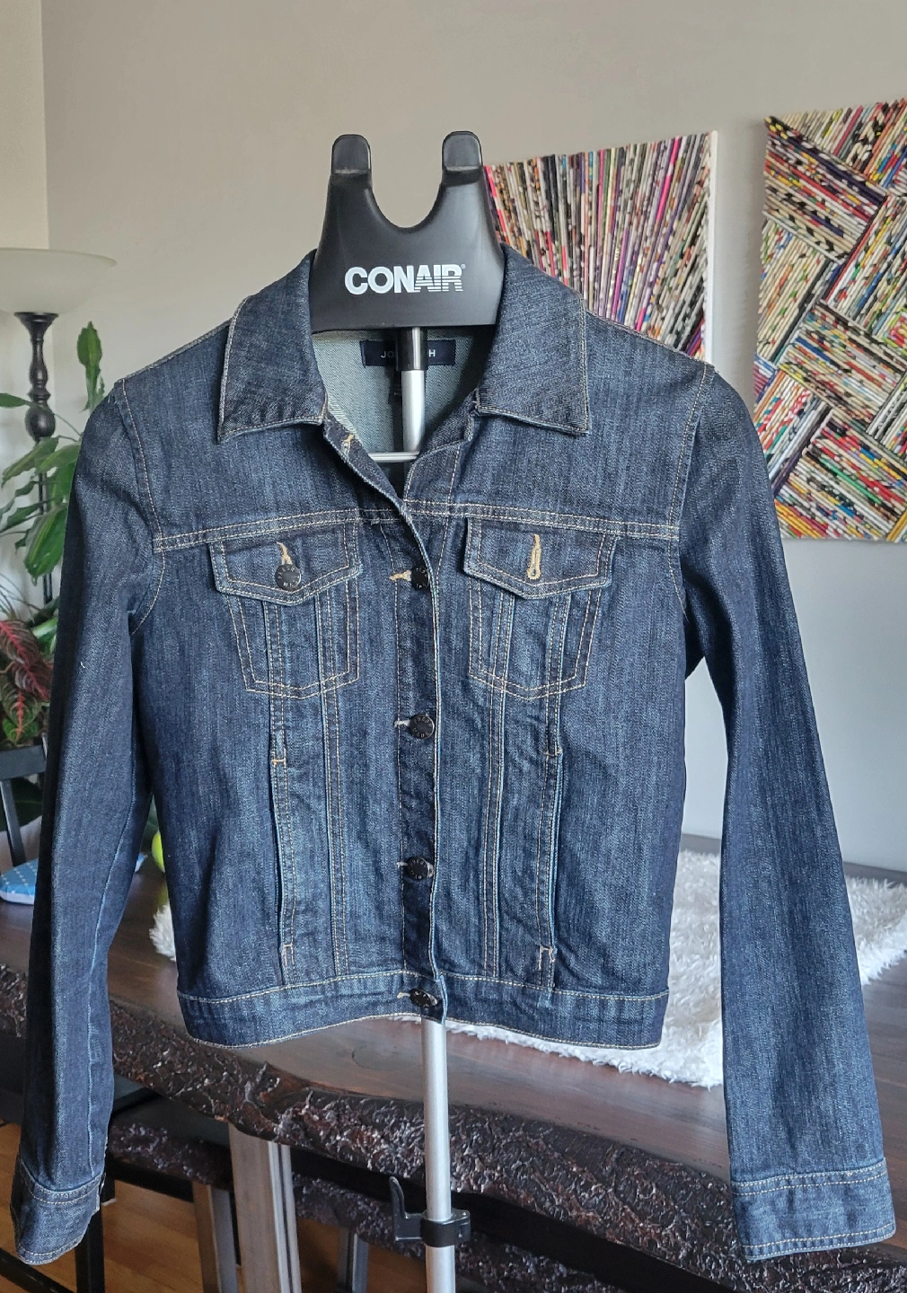 Here's a gently-used classic denim jacket from Joe Fresh! It's a versatile piece that would look great with any outfit. The jacket is in great condition and has a stylish, timeless look.