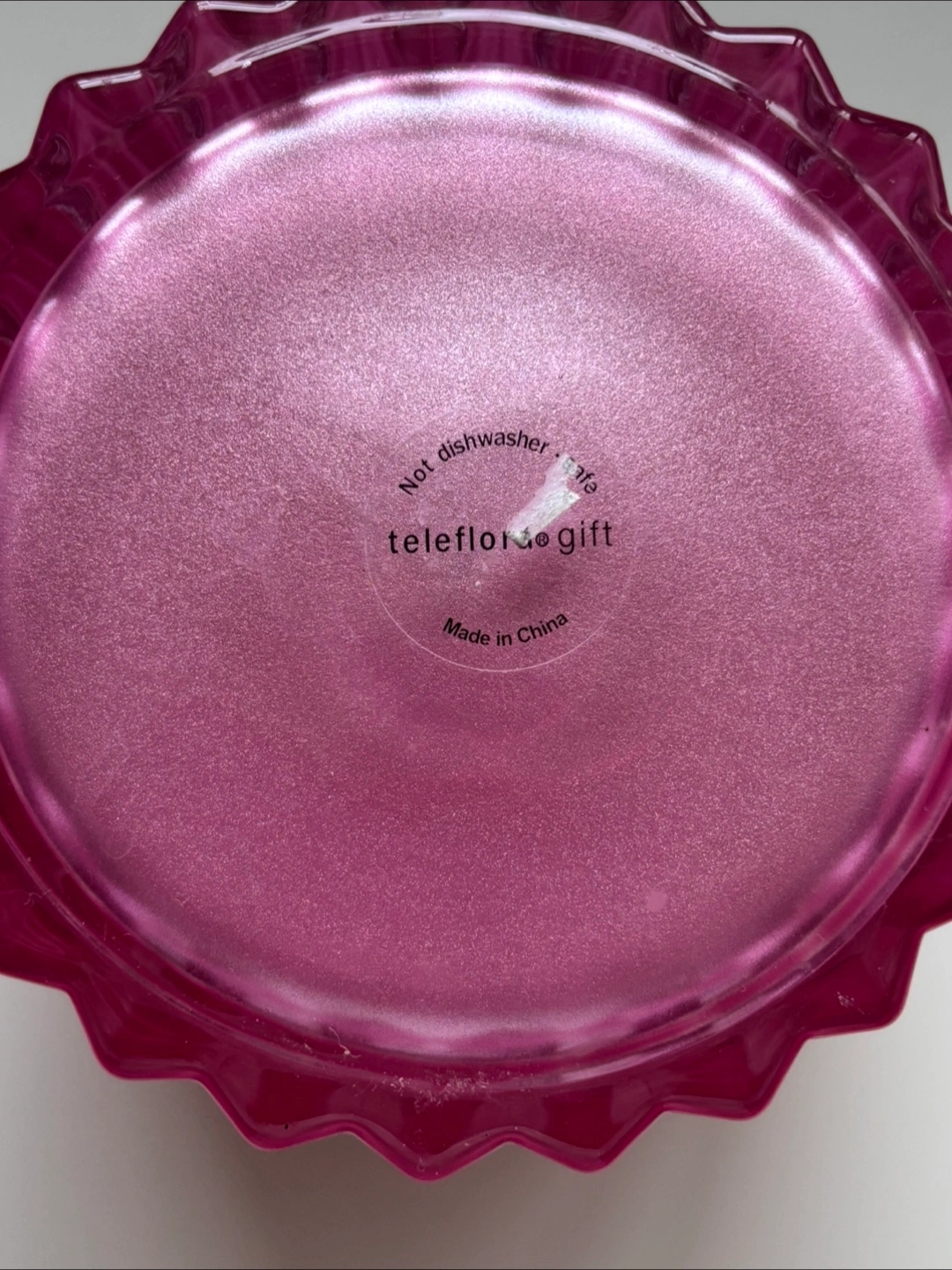 117Selling a cute pink vase from Teleflora. It's about 4 inches in diameter. Great for small bouquets or as a decorative piece!