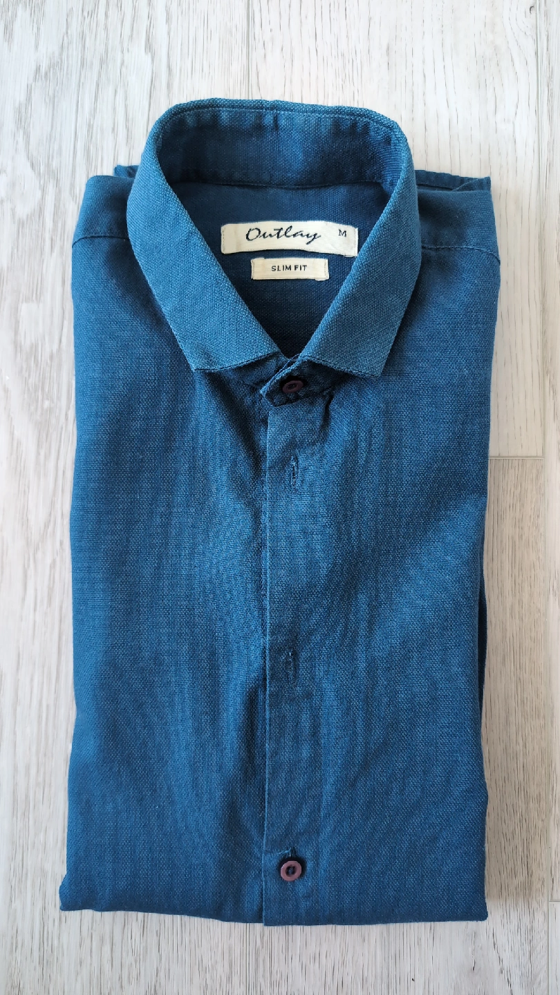 Selling a gently used Outlay slim fit shirt in size medium! It's a nice deep blue colour, perfect for a casual or semi-formal occasion.