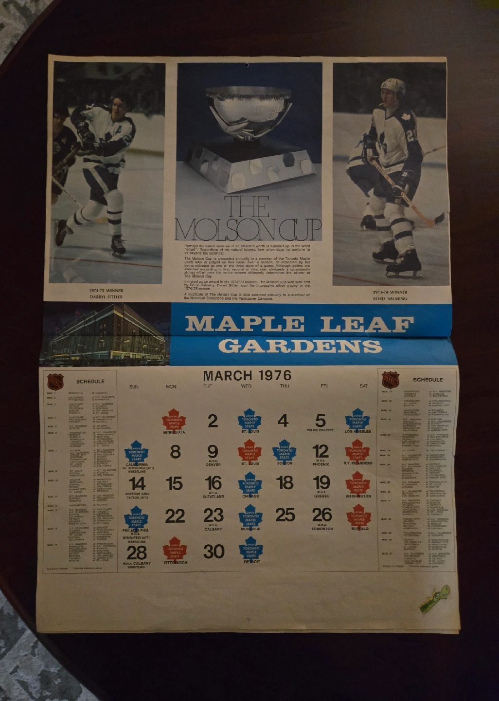 1971/72 and 1975/76 Vintage Toronto Maple Leafs Calenders.