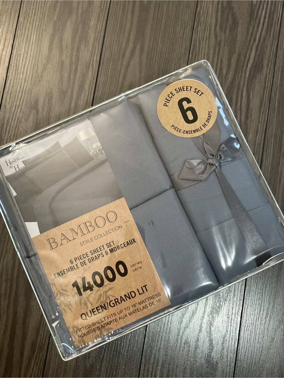 This is a brand new Bamboo Style Collection 6-piece sheet set in queen size! The set includes a fitted sheet that fits up to 18" mattresses, a flat sheet, and pillowcases. Enjoy the luxurious softness and breathability of bamboo for a comfortable night's sleep. This set is a great addition to any bedroom!