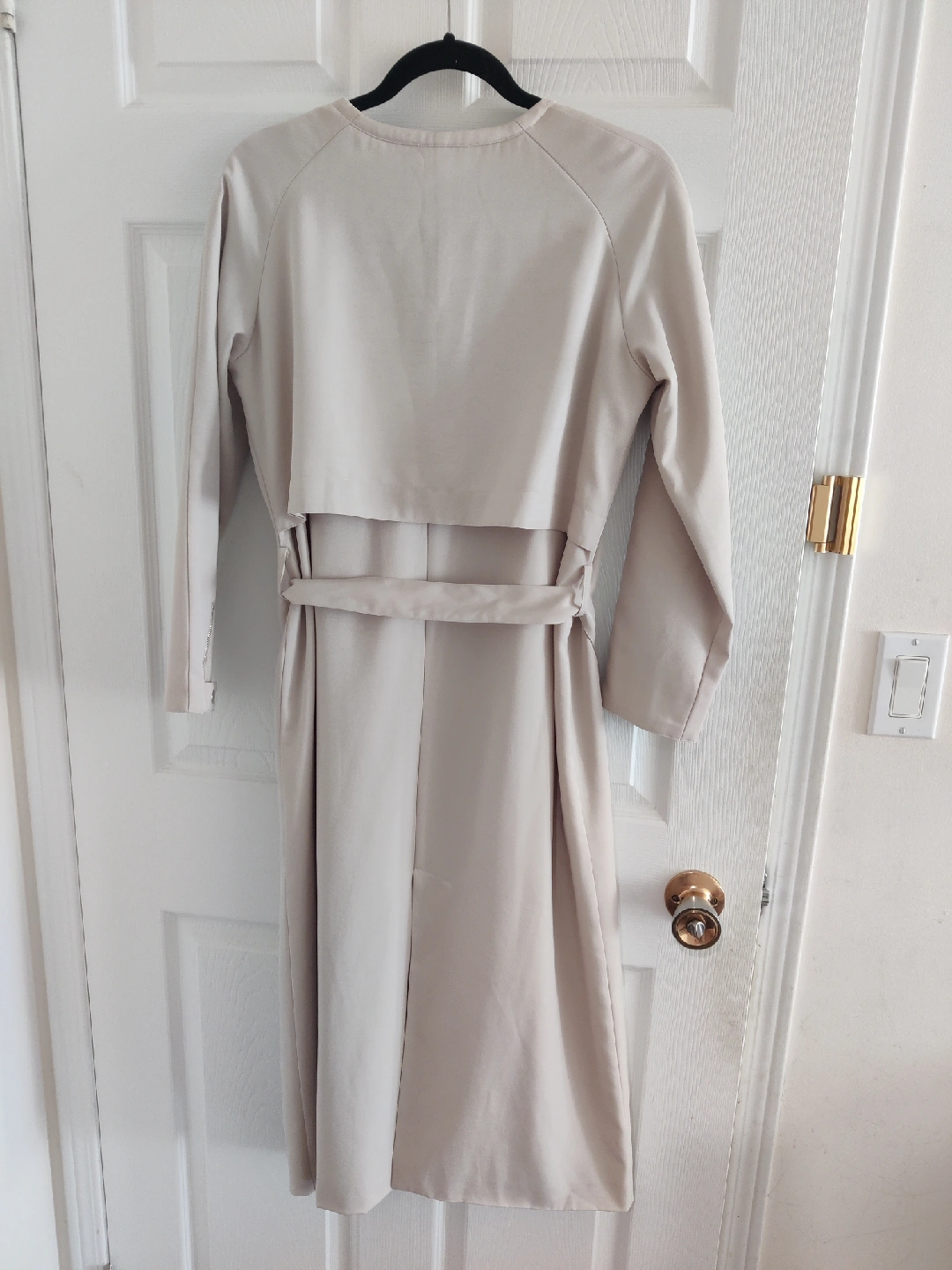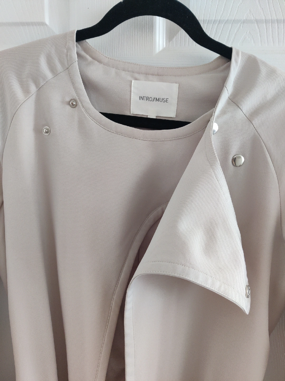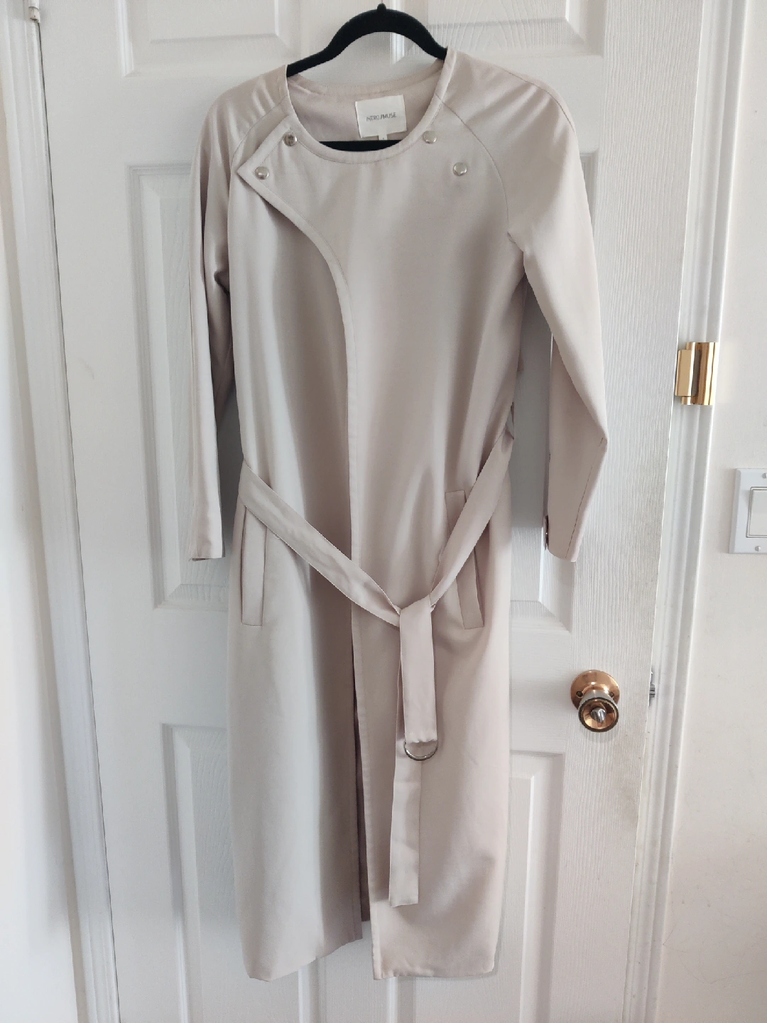 Selling a stylish beige trench coat from INTRO/MUSE. It's in great condition and features a flattering belted design. Perfect for layering during those cooler Canadian days! fits size 4-6