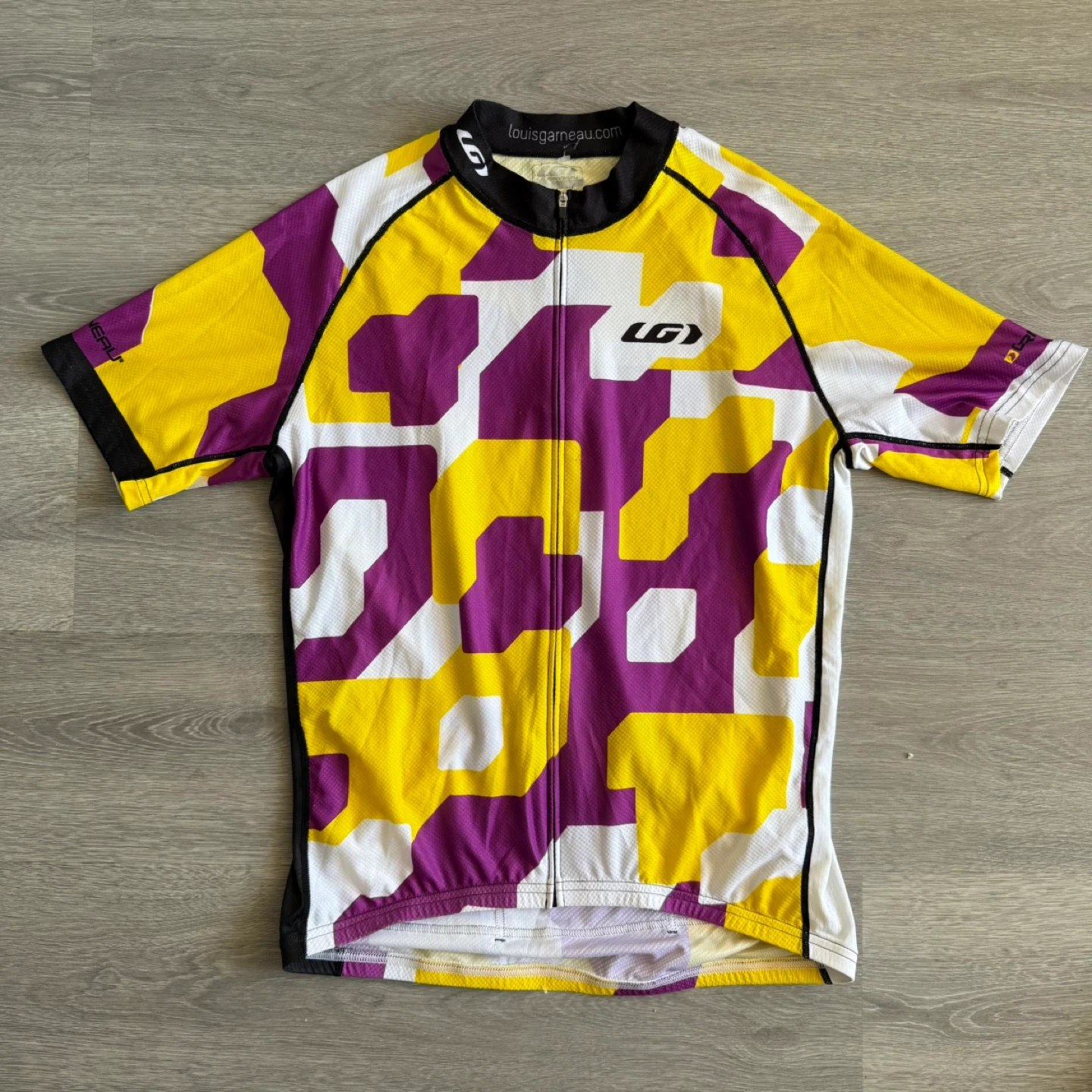 Selling a Louis Garneau cycling jersey in a vibrant purple, yellow, and white geometric pattern. It's in great shape and perfect for your next ride! The jersey features a full zip and short sleeves. SIZE: W L/XL CONDITION: LIKE NEW ** if listing is still up the item is available ALL SALES FINAL SERIOUS INQUIRES ONLY PLEASE :) PICKUP ONLY - PRIORITY TO QUICK PICKUP AND/OR BUNDLES LOCATION: DOWNTOWN ( RICHMOND/ GEORGE ST) Check my listings for more and follow for new items almost DAILY😀!!!