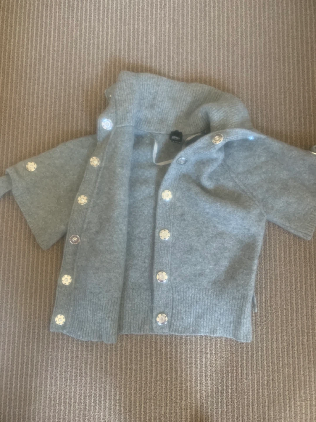 Cozy Esprit cardigan in a light grey colour! It's made from a blend of 80% wool and 20% rayon, so it's super soft and comfy. The cardigan has a stylish collar and cute button details. Size small. Pick up at Eglinton Ave east at Bayview.