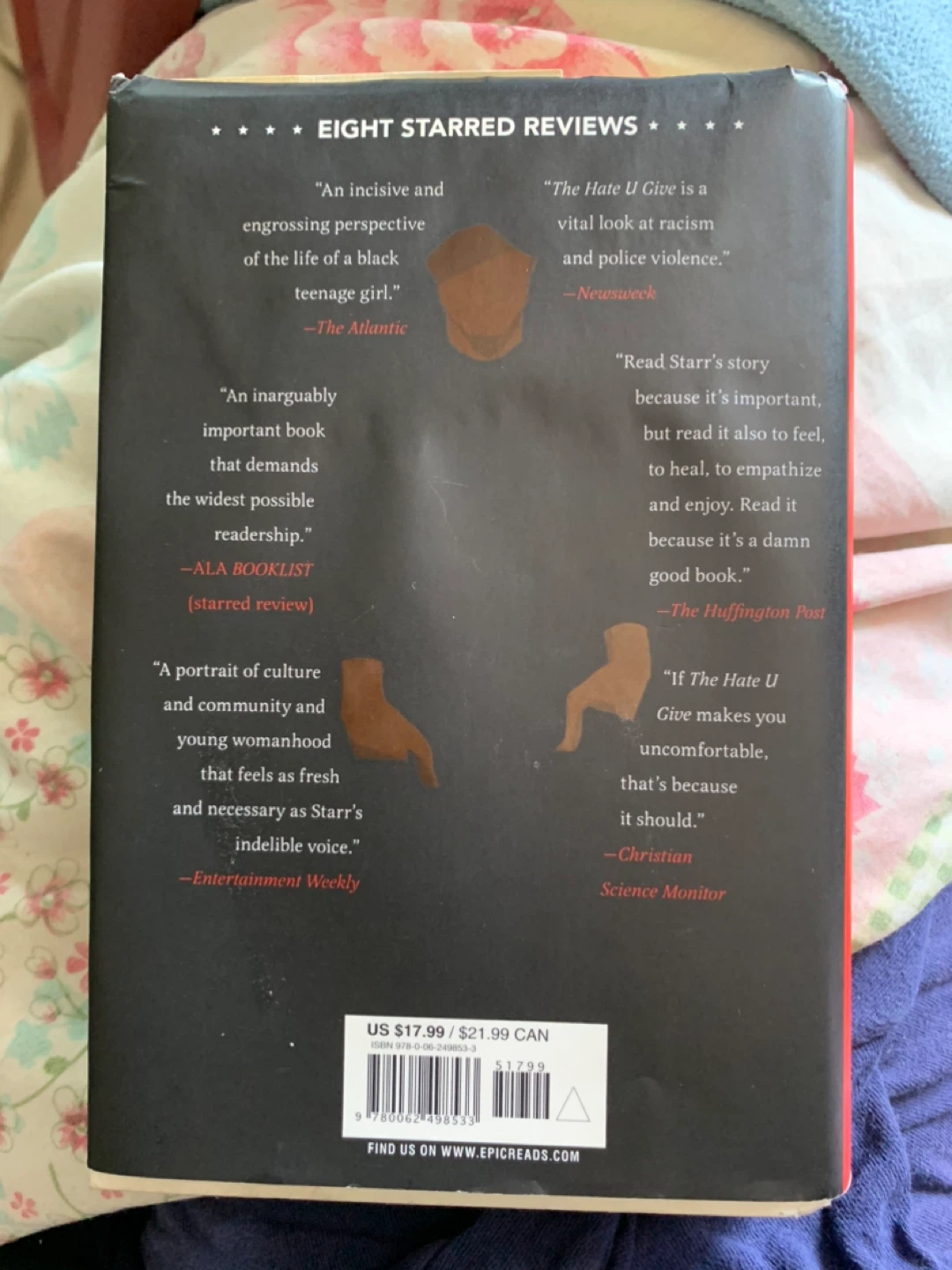 Selling a copy of "The Hate U Give" by Angie Thomas! It's a #1 New York Times Bestseller and has received eight starred reviews. A really impactful read!