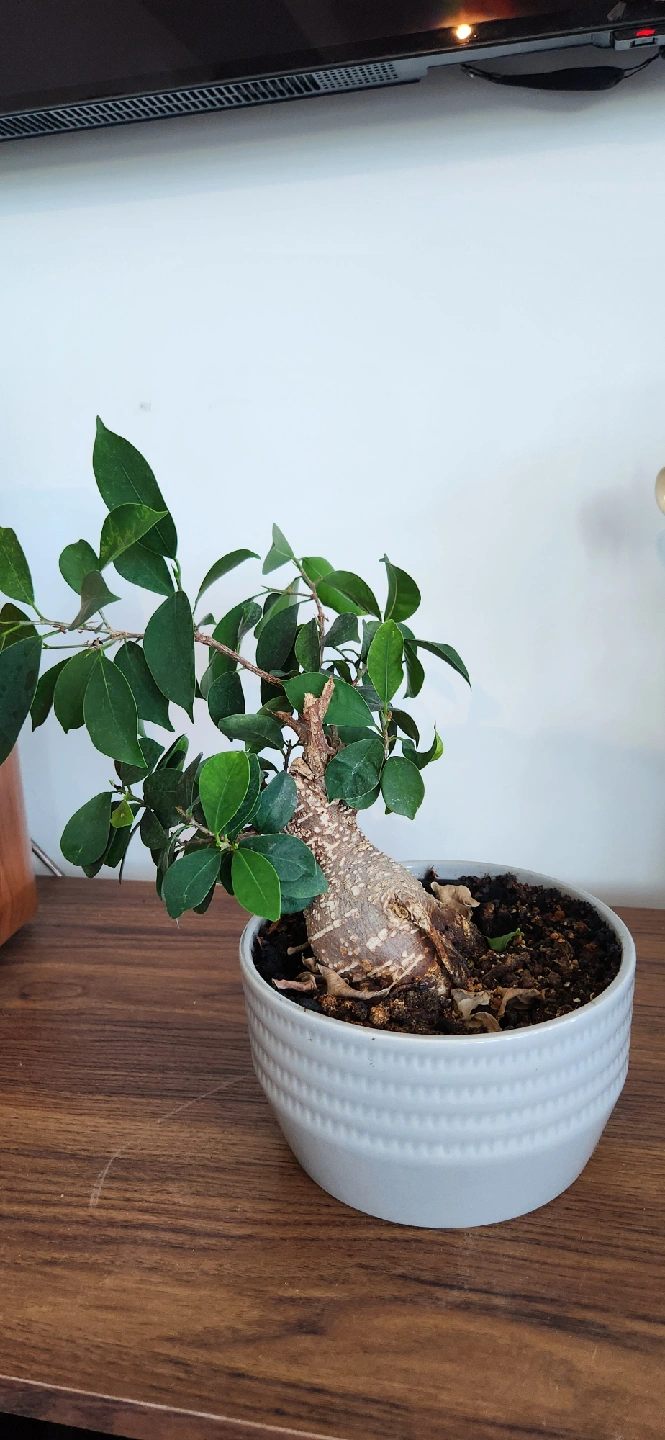 A beautiful bonsai tree in a white pot, perfect for adding a touch of nature to your home or office. Selling because I'm out of room in my condo :D