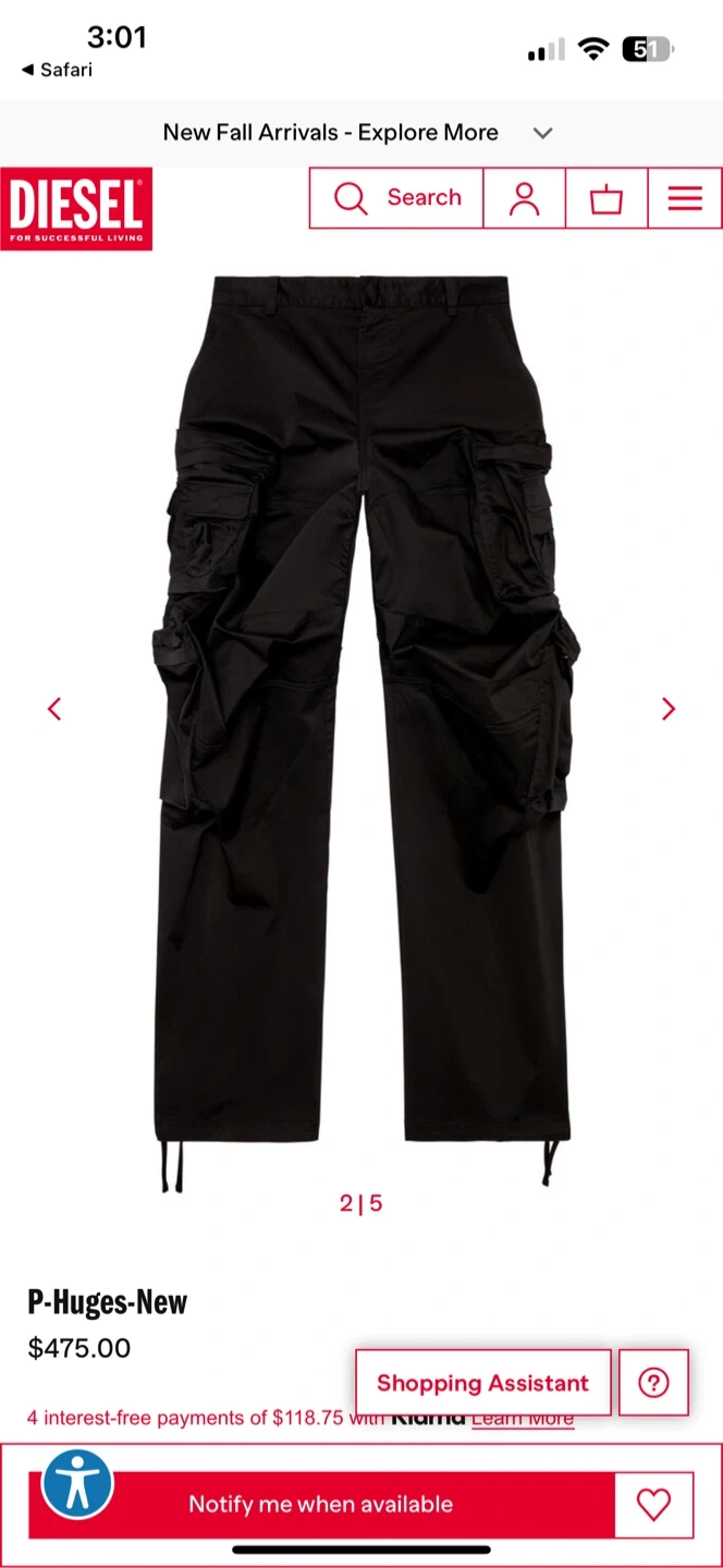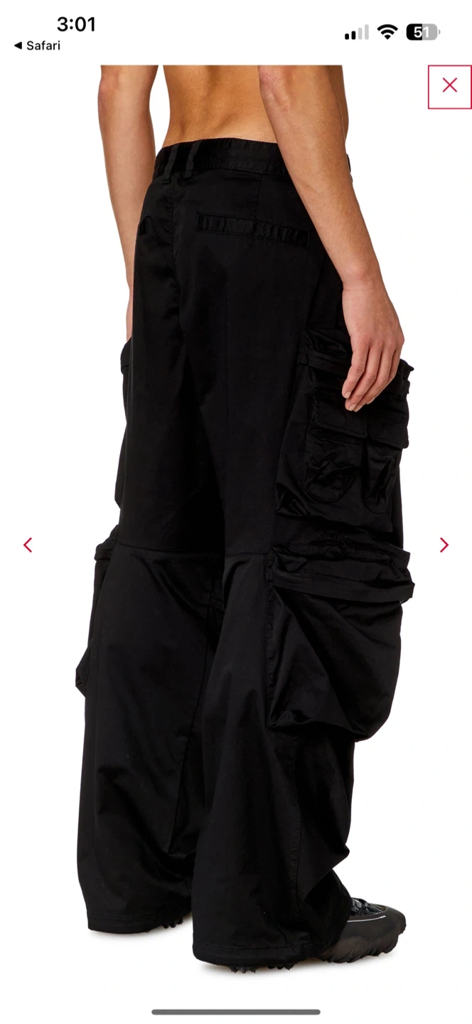 BRAND NEW Selling a pair of Diesel P-Huges-New cargo pants in black. They have a unique design with lots of pockets! Originally priced at $475. These pants are perfect for adding a stylish and functional touch to your wardrobe