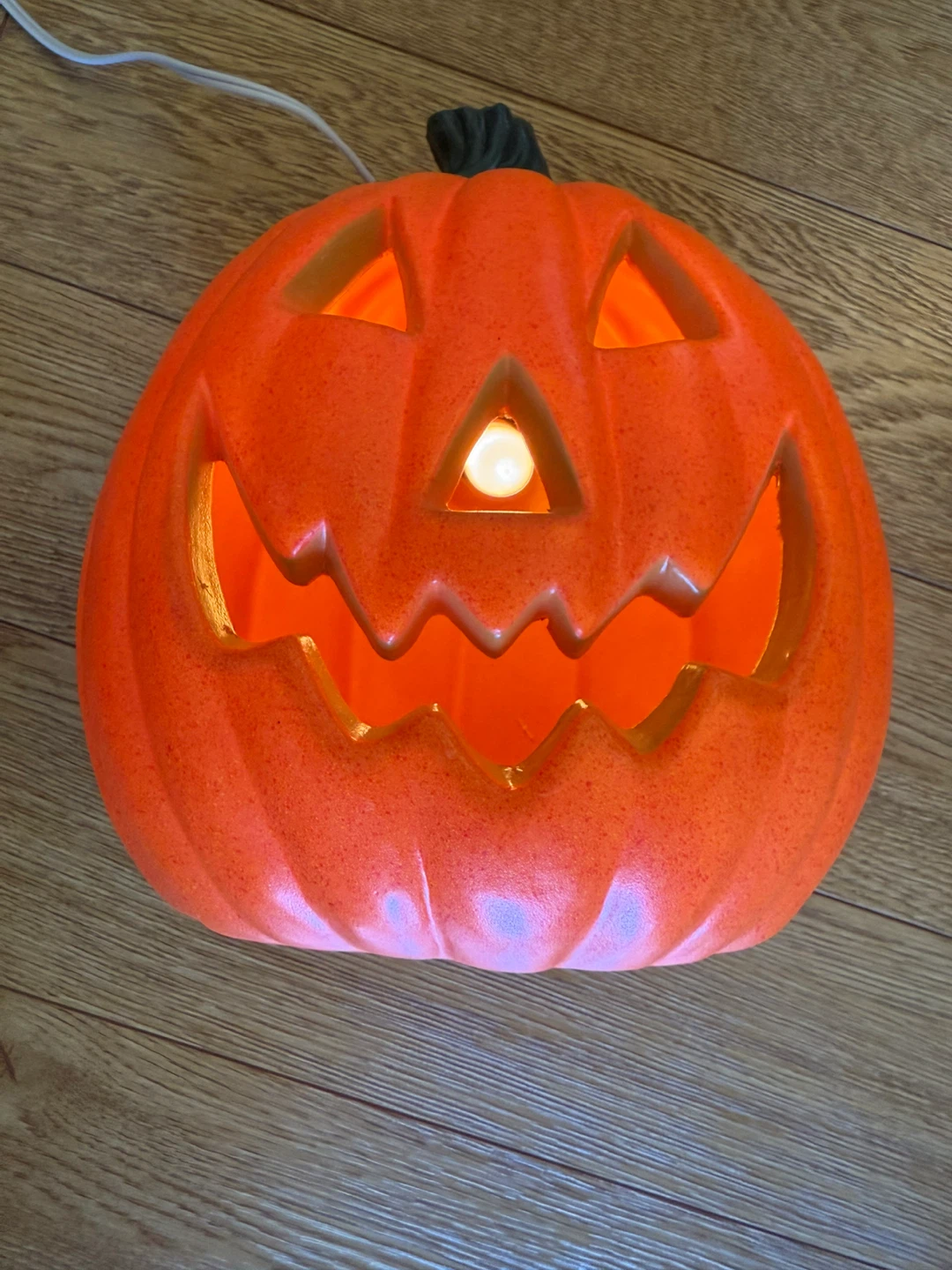Get ready for Halloween with this fun light-up pumpkin decoration! perfect for adding a spooky touch to your home. It's designed for indoor use and has a decorative lighting outfit. Barely used. Perfect condition. Makes a good addition to a kids bedroom as a night lamp, or any other room.