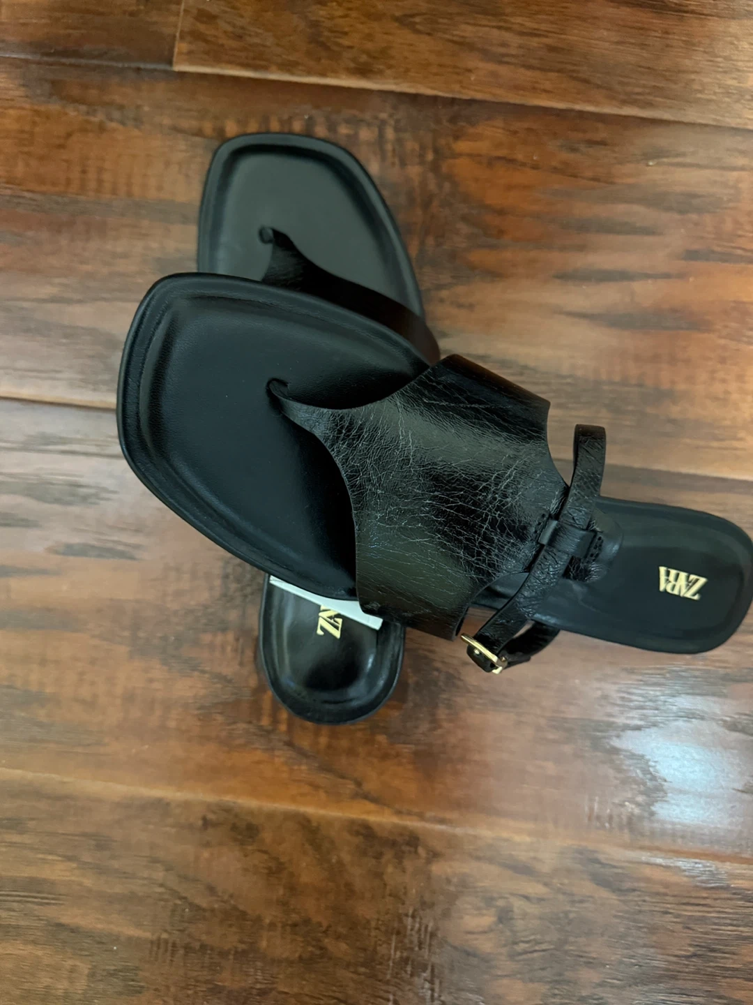 Selling a pair of Zara black heeled thong sandals in size 38. They're in great condition and ready for a new home! The sandals feature a stylish design with a comfortable heel height, perfect for dressing up or down. A gold buckle adds a touch of elegance to the overall look. These sandals are a versatile addition to any wardrobe