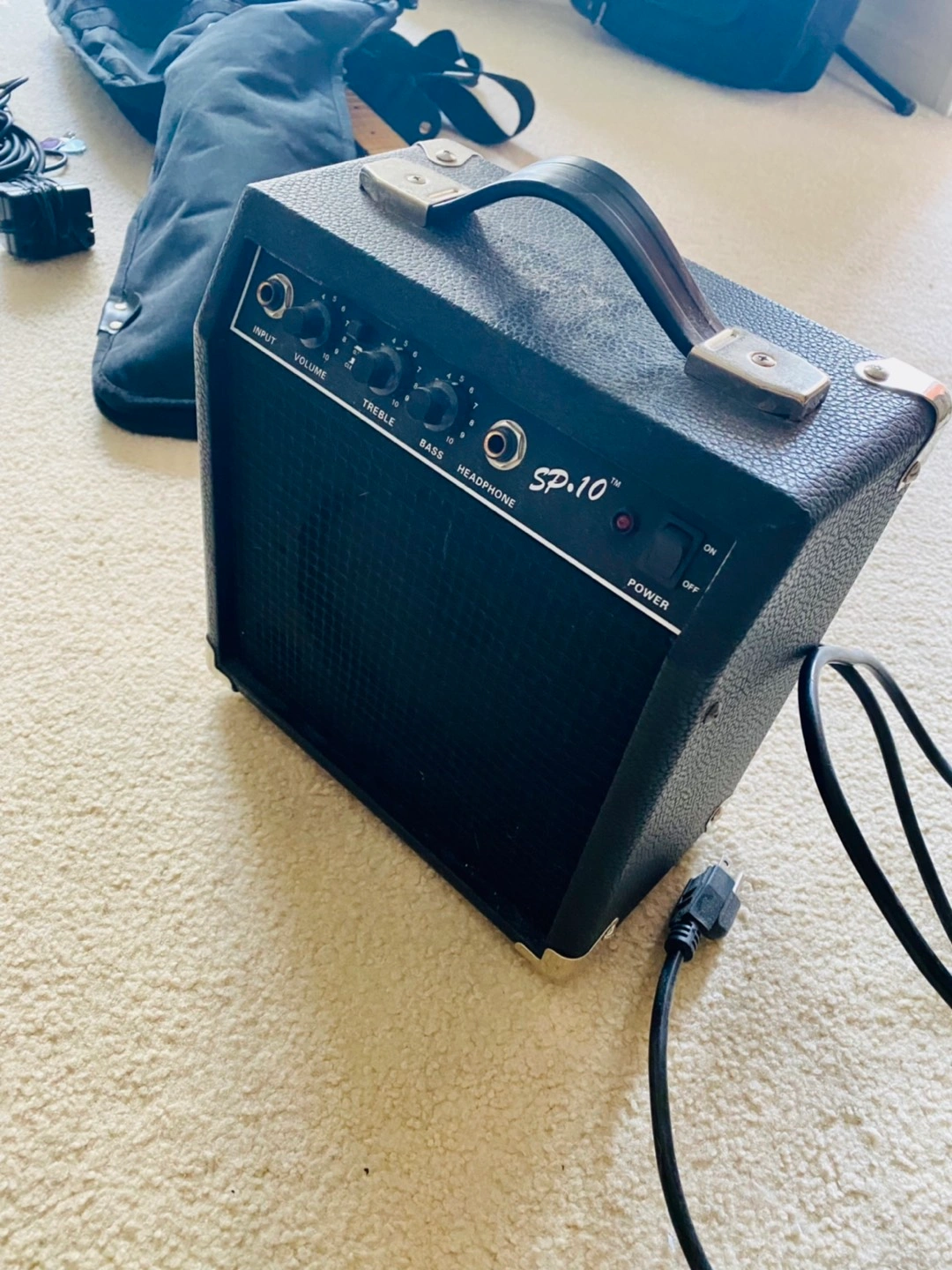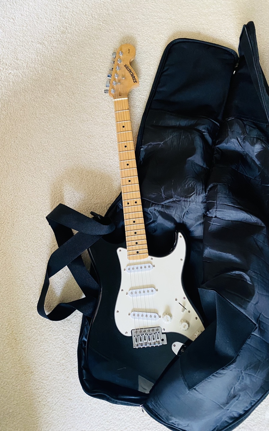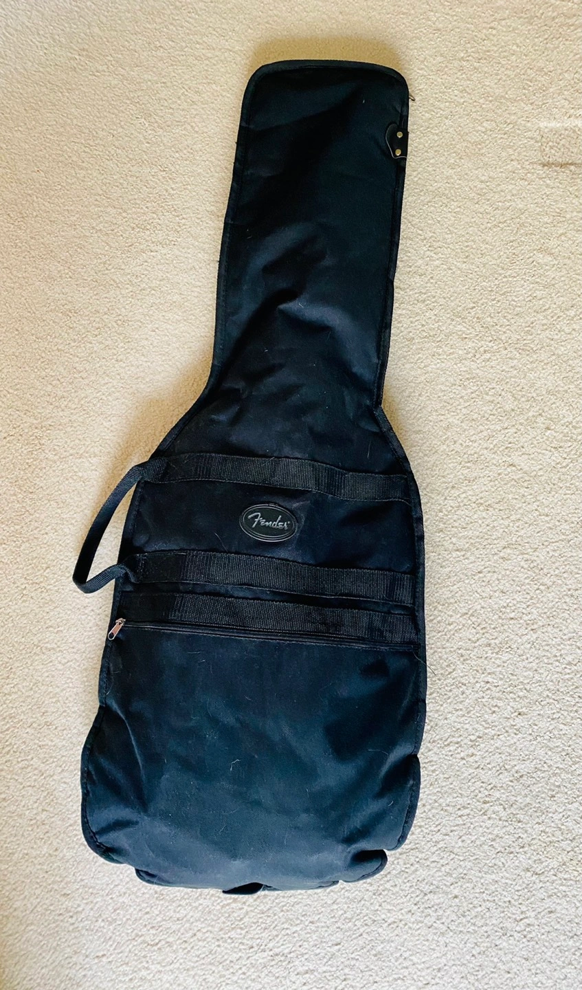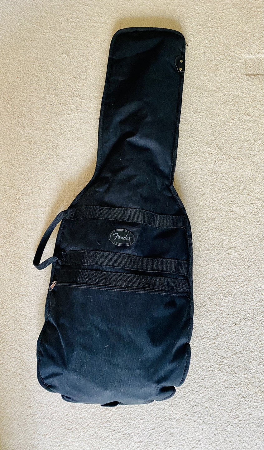 Includes 5W amp, cables, and whammy bar. I’m also adding the power adaptor, capo, soft black Fender carrying case and a Fender tuner.