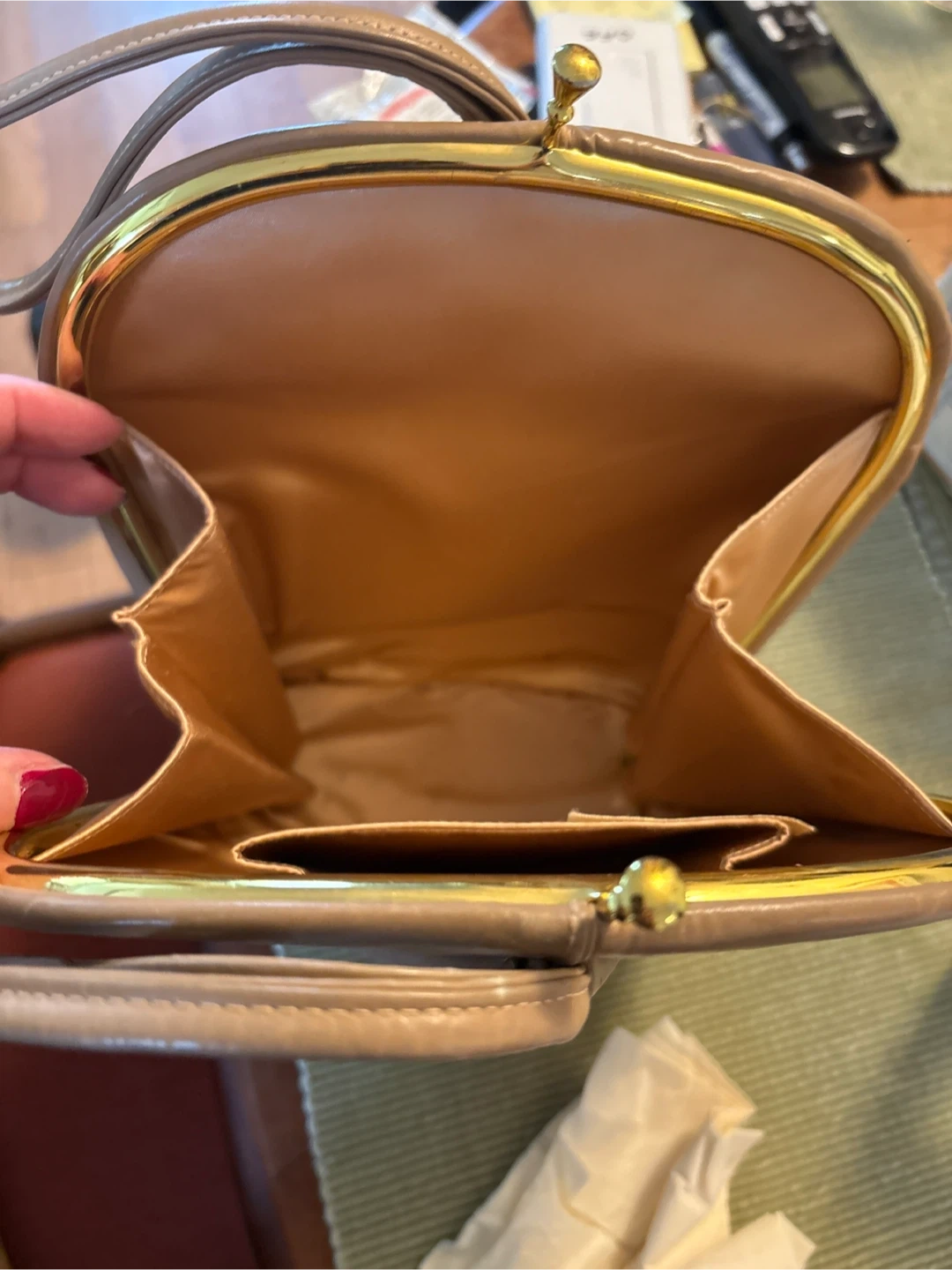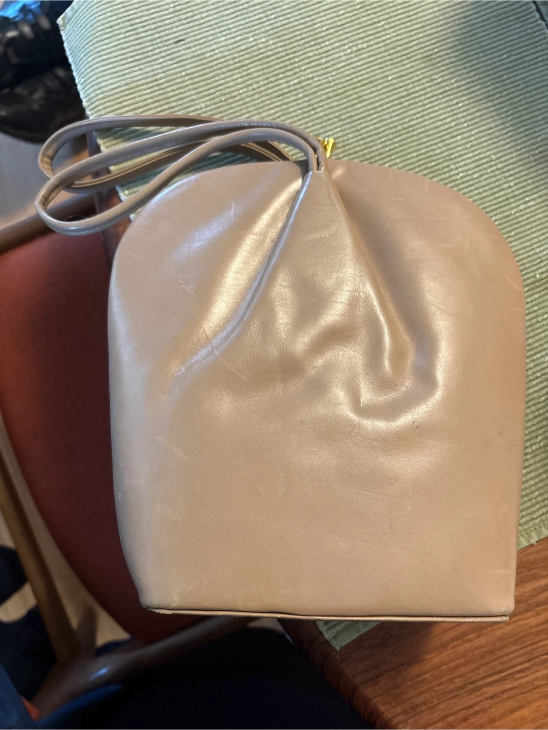 Selling a vintage beige leather kisslock purse. It's in excellent condition and has a unique vintage charm. Perfect for adding a touch of retro style to your outfit!