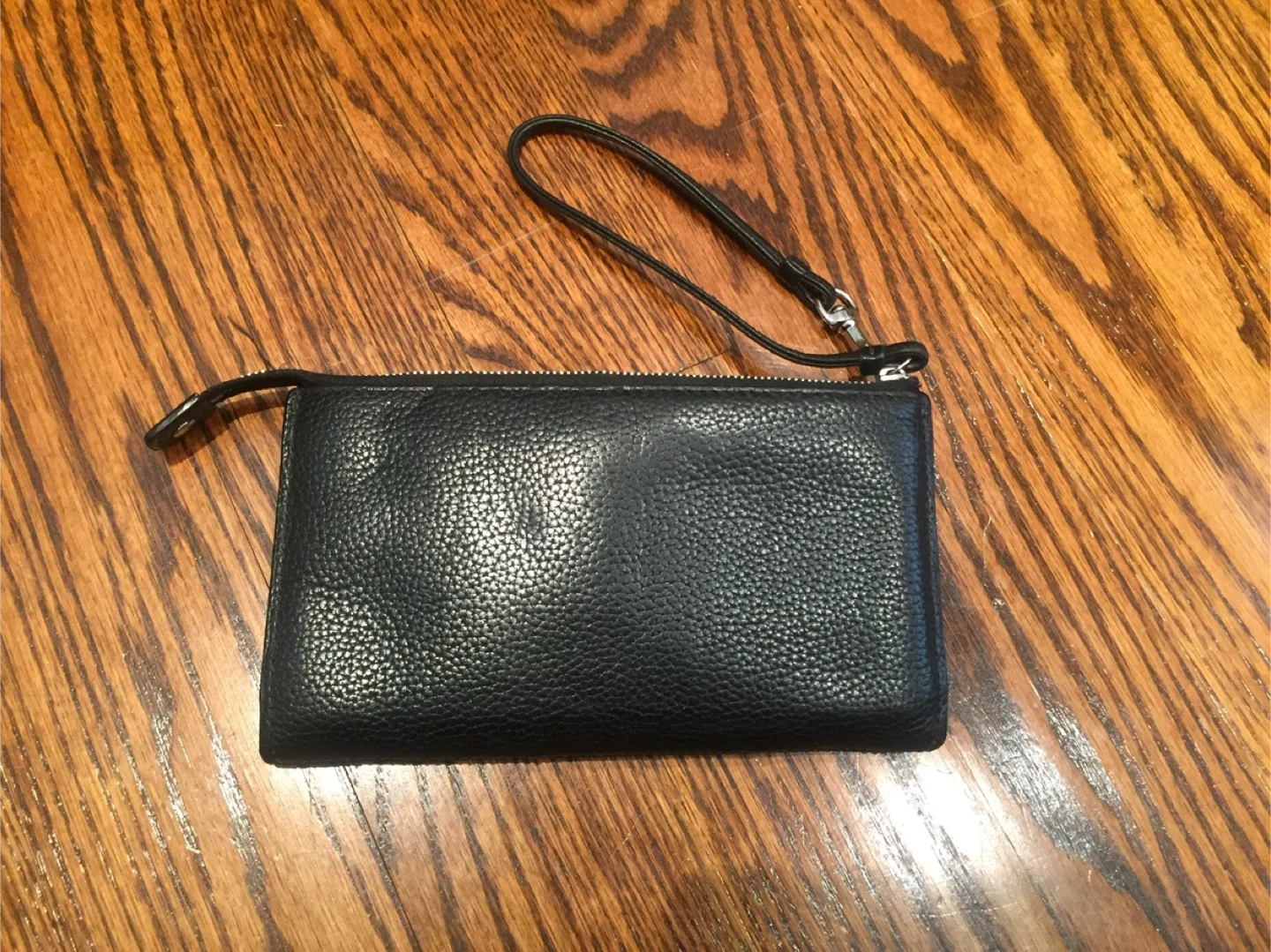 Selling a Coach wristlet in black leather! It's in great condition and perfect for carrying your essentials. The wristlet features a zipper closure and interior card slots to keep you organized