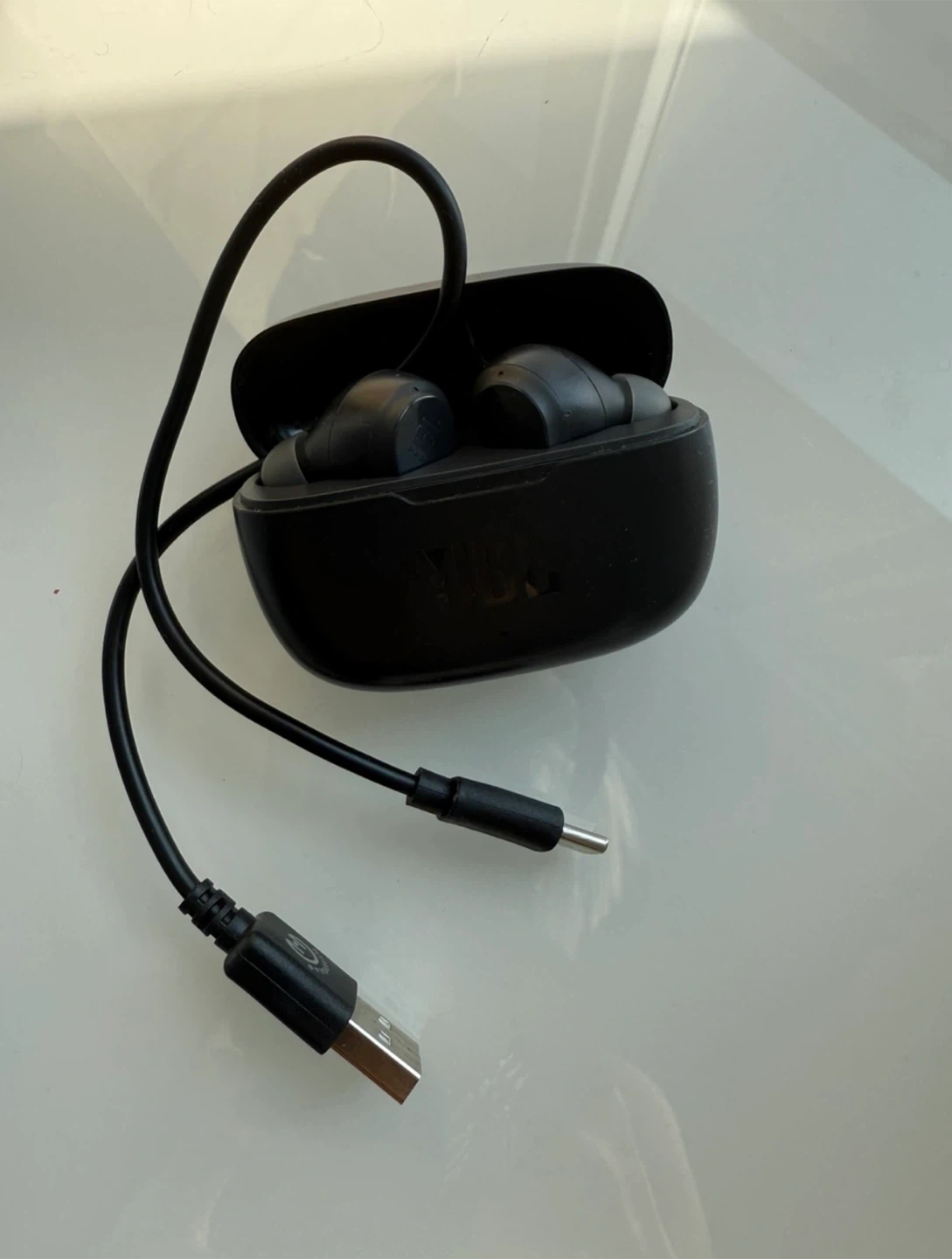 Selling a pair of JBL Tune 230NC wireless earbuds in black! They're in great shape and come with the charging case and cable. Perfect for listening to music or podcasts on the go
