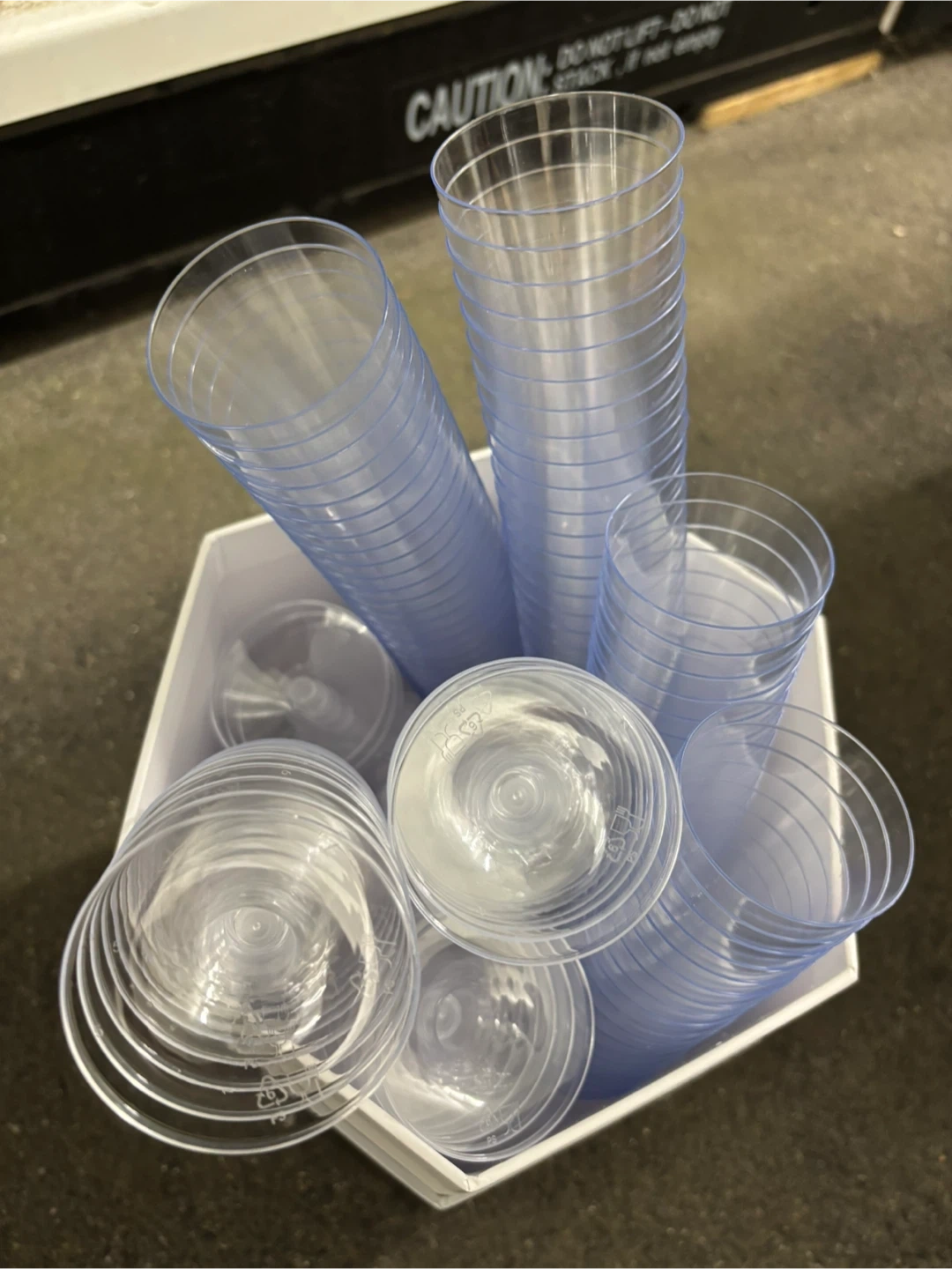 Selling a bunch of clear plastic cups! They're perfect for parties, picnics, or just everyday use. They are in great condition and ready for a new home