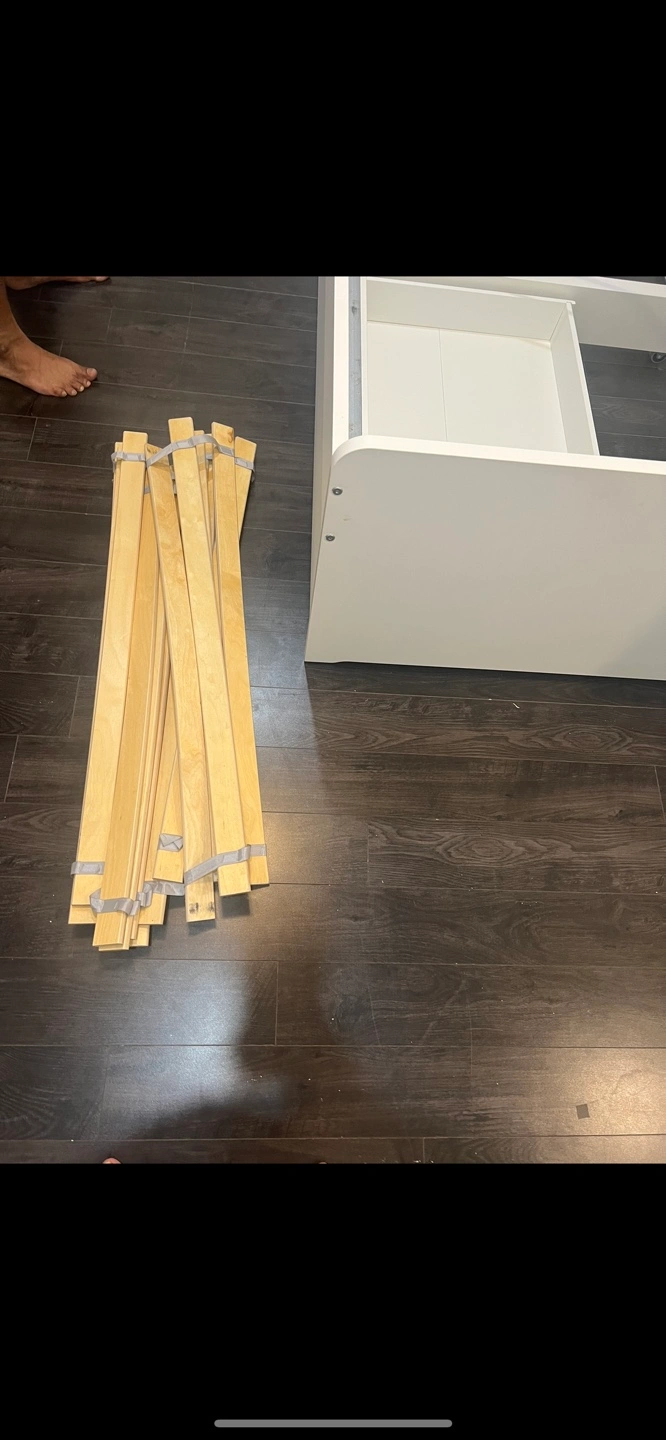 Selling a white Ikea Hemnes daybed frame. It's in great condition and ready for a new home! This versatile piece is perfect for a guest room or a child's room, offering both a sofa and a bed in one. The clean, classic design fits seamlessly into any decor. It comes disassembled.