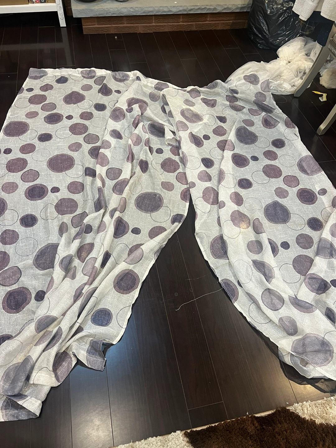 Selling a curtain with a circle pattern. It's in great condition and would be a nice addition to any room