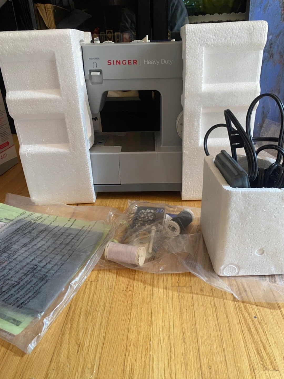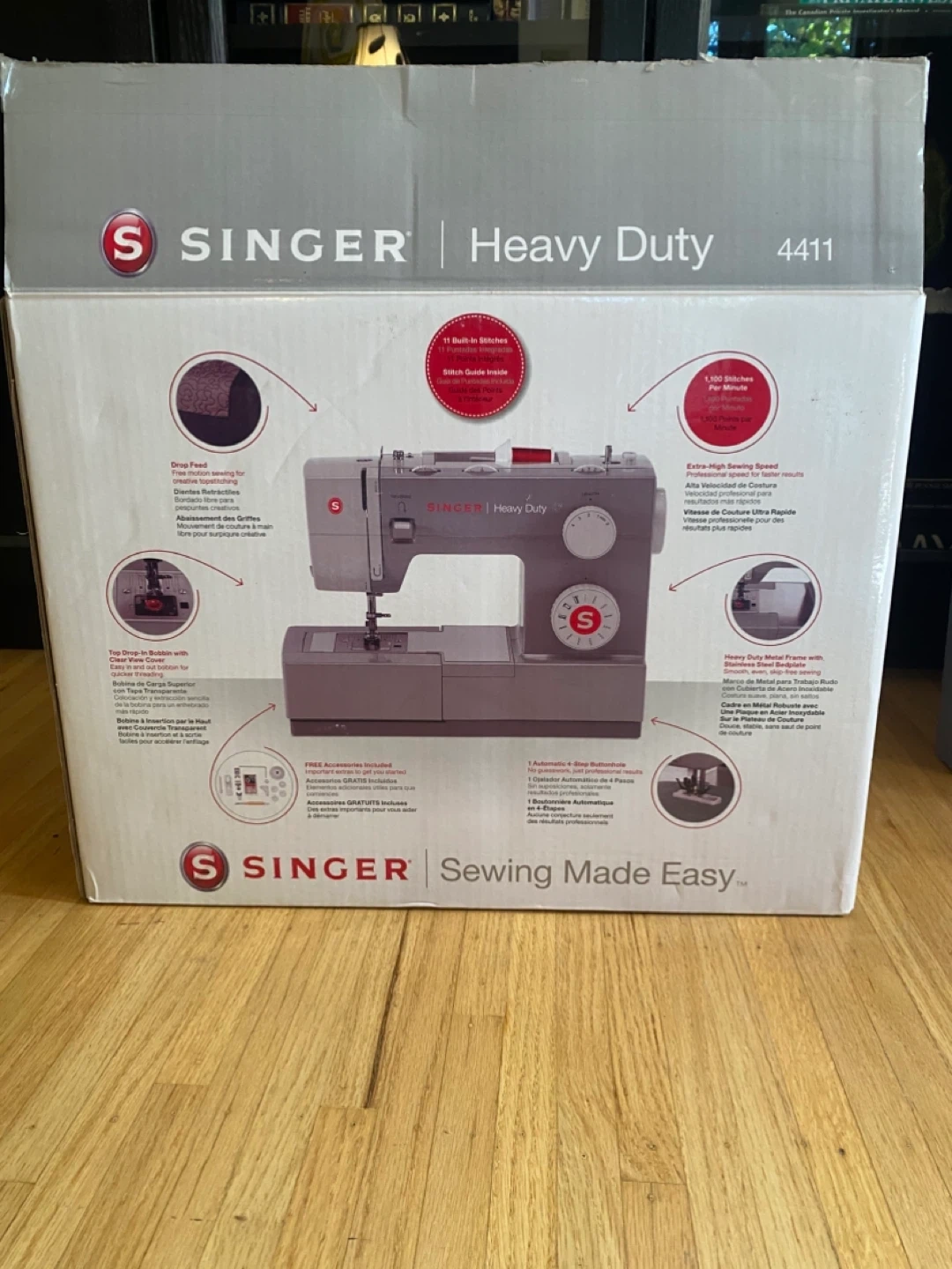 Selling a Singer Heavy Duty 4411 sewing machine! It's in great condition and comes with all the original accessories and the box. This machine is perfect for a variety of sewing projects and is known for its durability and ease of use. Sewing Made Easy™