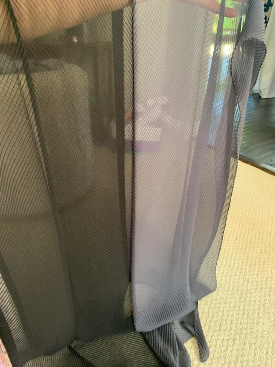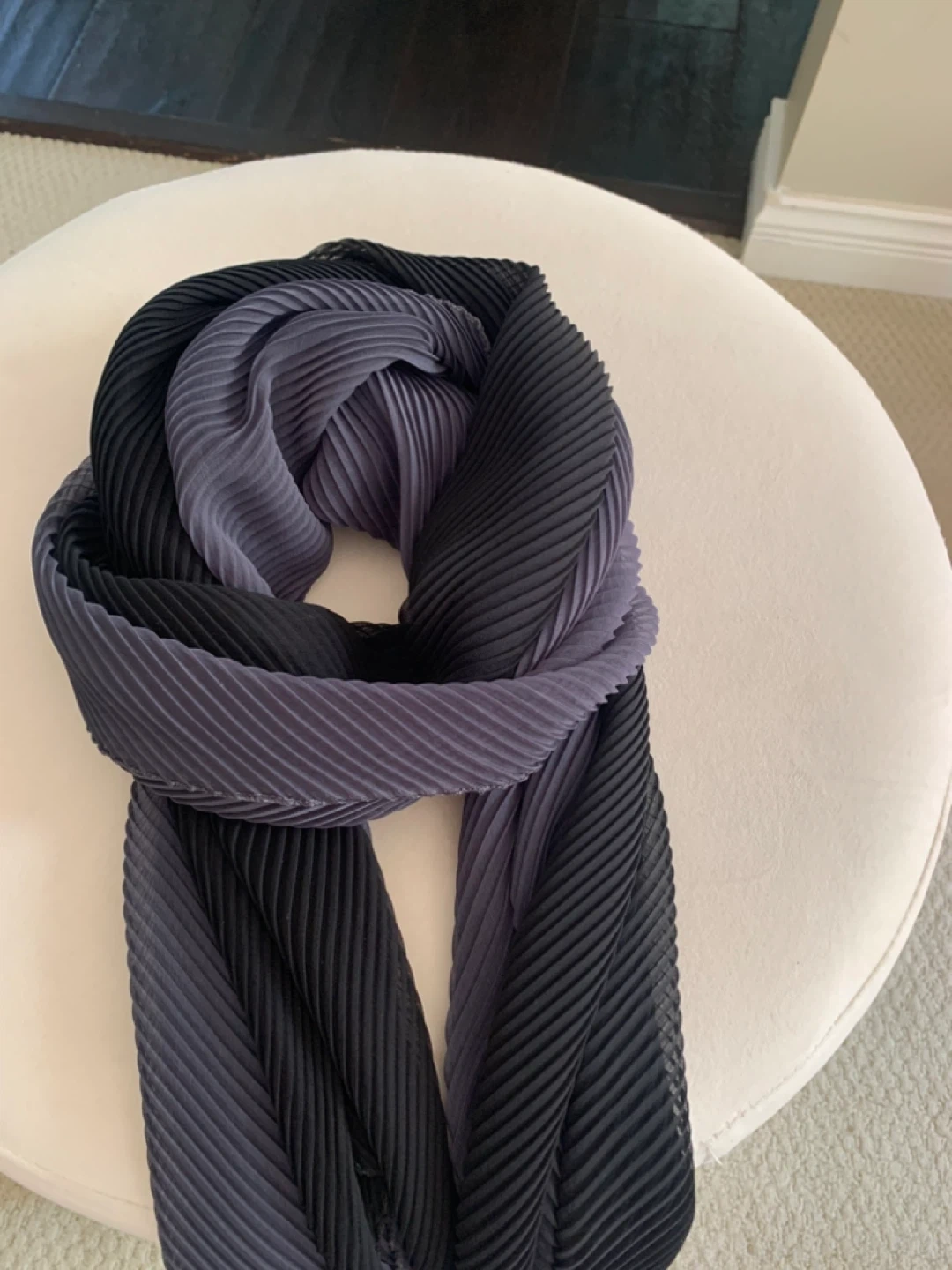 Selling a scarf in shades of black and grey. It's in excellent condition and would make a stylish addition to any outfit!