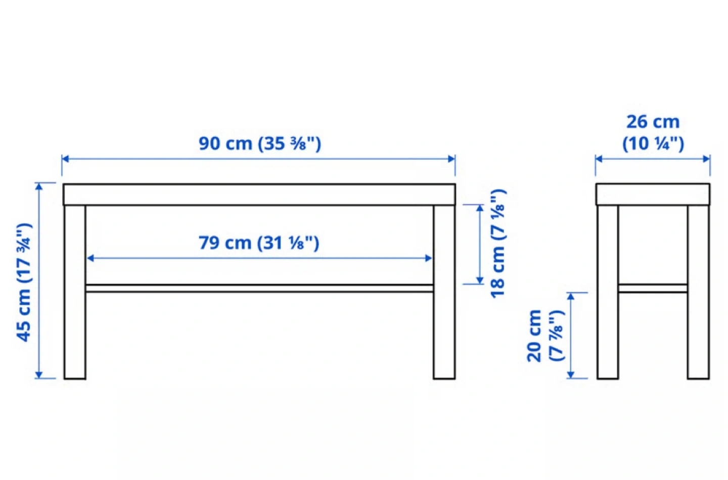 - Dimensions90x26x45 cm (35 3/8x10 1/4×17314 ")