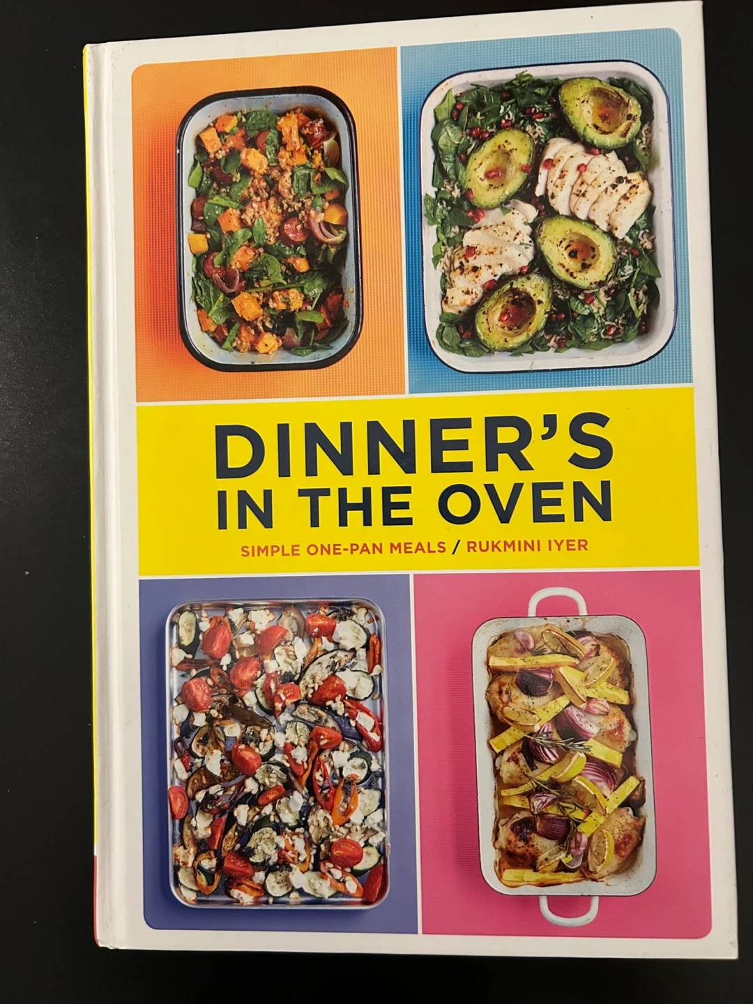 Selling a copy of "Dinner's in the Oven" by Rukmini Iyer! It's a cookbook filled with simple one-pan meals, perfect for busy weeknights. The book has 75 recipes for satisfying one-dish meals, ranging from chicken wings to crispy baked gnocchi. There are also comforting treats such as Strawberry Almond Cake. This book is great for anyone who wants to eat nutritious food made from scratch that fits into their busy lives