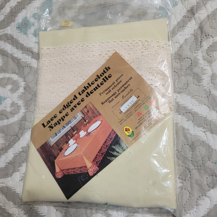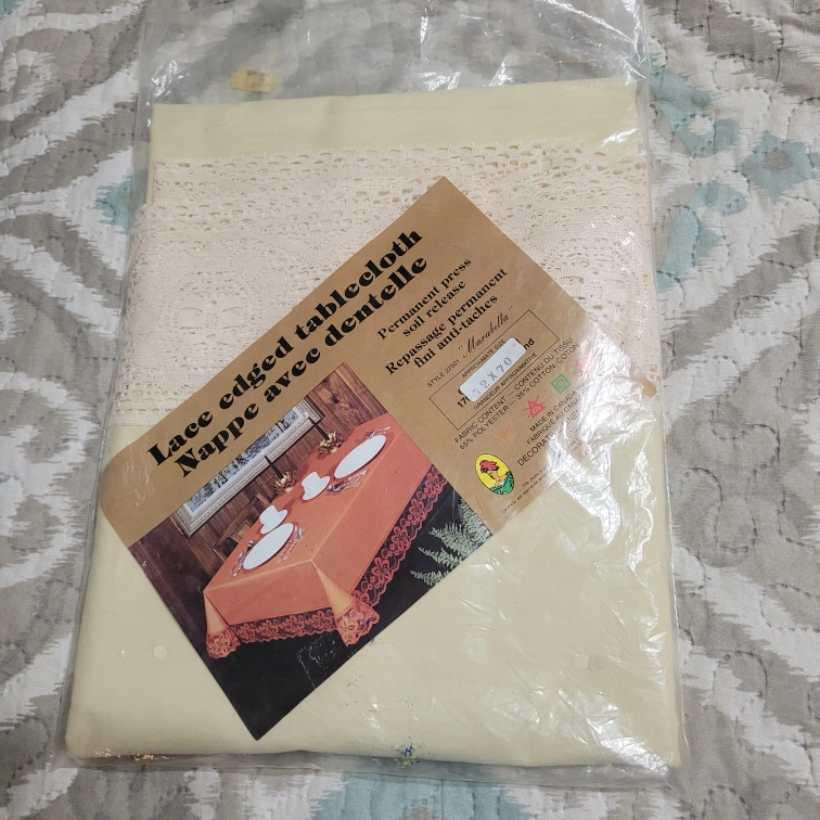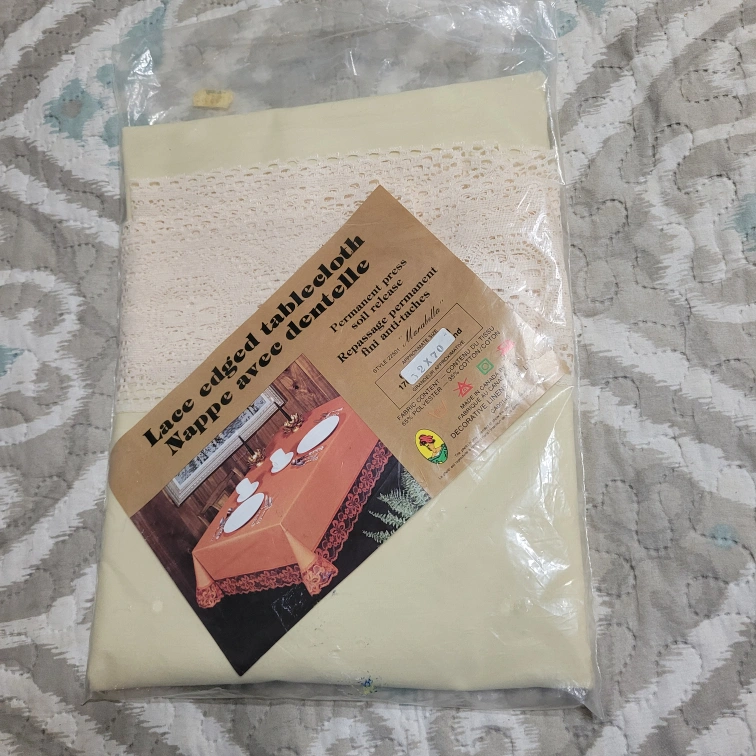 Vintage 52" x 70" Rectangle Table Cloth Brand New in Package please see all pictures Please See all my Other Listings, Bundle & Save for a Better Deal! Located in Bradford, May be able to Meet, Shipping Offered at Buyers Expense, Please contact me for more Info & to make arrangements, sorry no holds without an ET, Thank you so much for Looking!