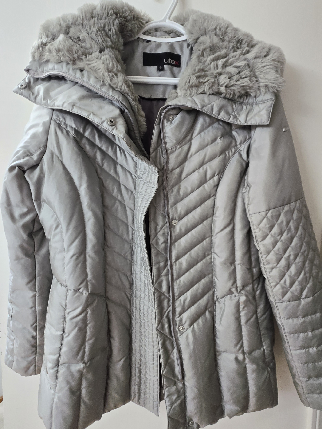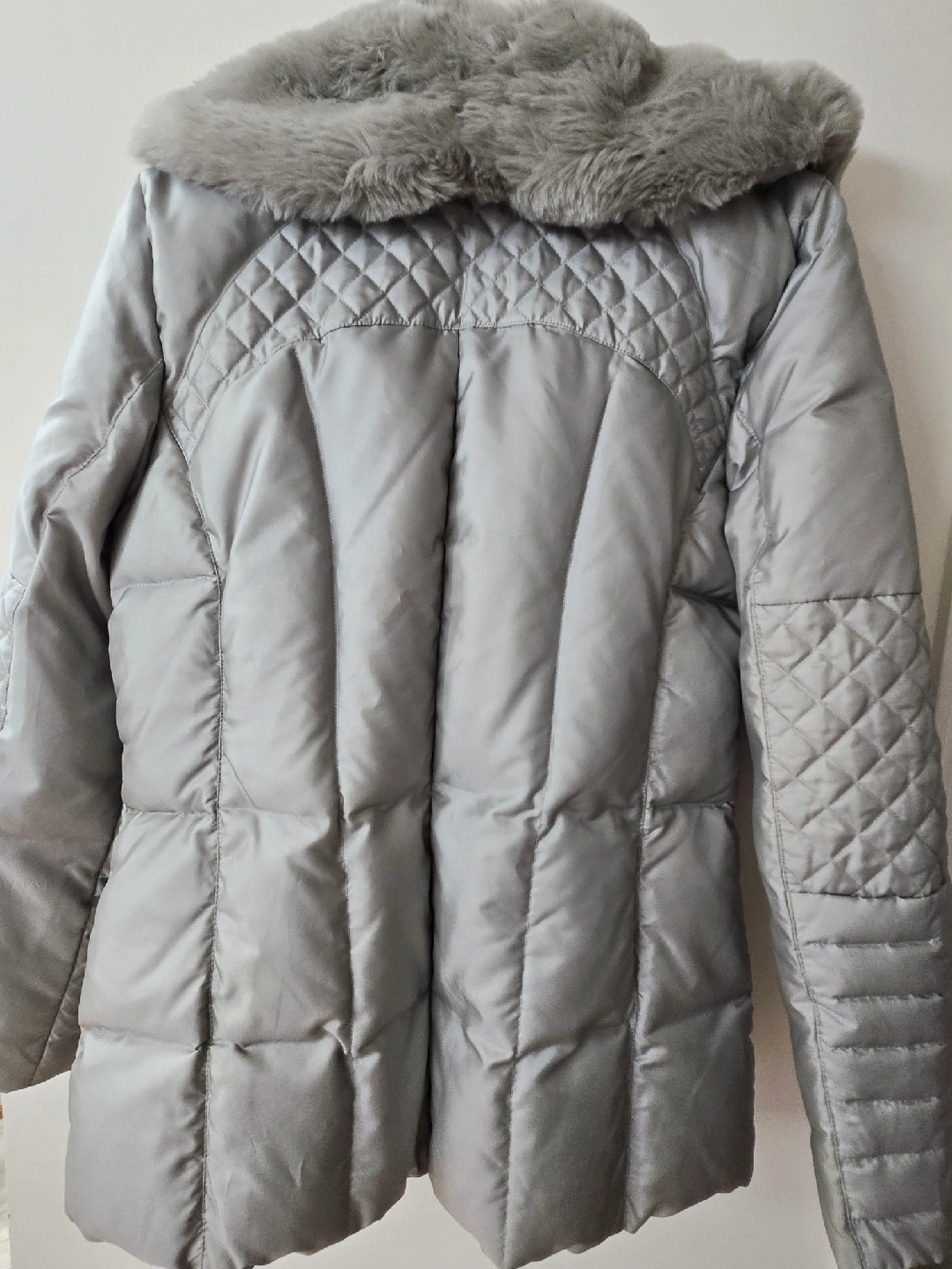 Selling a lovely silver down winter coat from Lite! It's a size small and features a faux fur collar for extra warmth and style. Perfect for those cold winters!