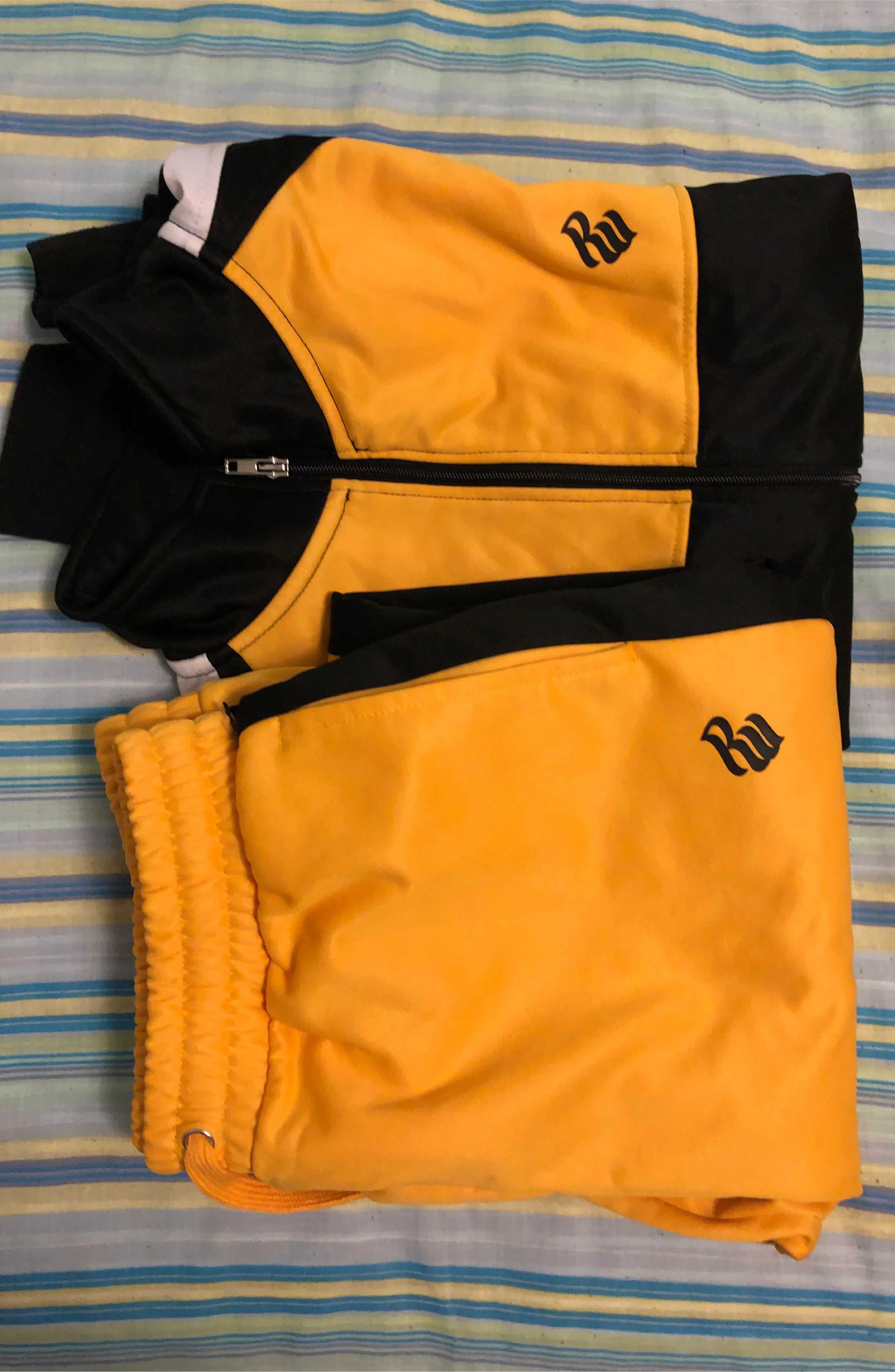 Selling a Rocawear tracksuit in size medium. The tracksuit is black and yellow with the Rocawear logo. Perfect for workouts or just lounging around! The jacket full zips up and the pants have a comfortable elastic waistband.