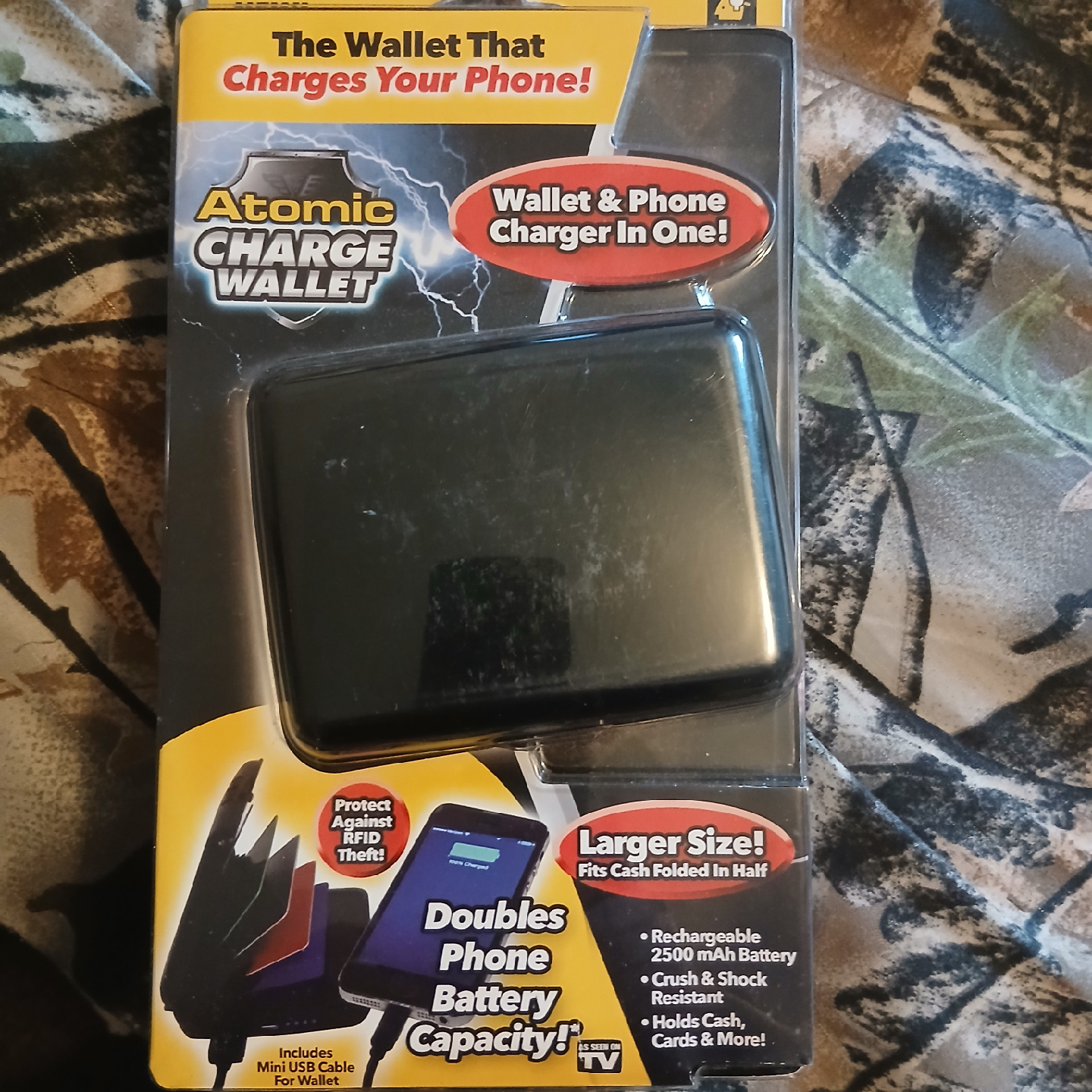 Check out this Atomic Charge Wallet! It's a wallet and phone charger all in one, so you can keep your essentials together and your phone charged on the go.