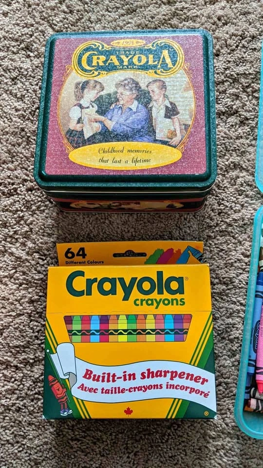 30I am selling a lot of Crayola crayons one is from the Crayola birthday set box is not included some are barely used. There are some discontinued colors in this lot good condition some are not even used. I also have a box of 64 different crayons Binny and Smith LTD on all the crayons. Has the sharpener in the back of the box. As well as a 1994 Crayola tin that the box came in. Asking $10 cash only or best offer & pick up in Edmonton.