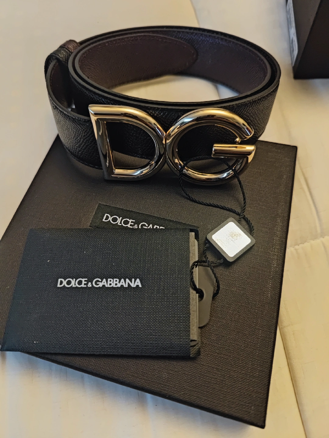 Elevate your style with this authentic Dolce & Gabbana black leather belt, complete with its original box. This stylish belt features a distinctive DG buckle and is crafted from high-quality leather. It's in new condition (never worn) ready to add a touch of luxury to any outfit.
