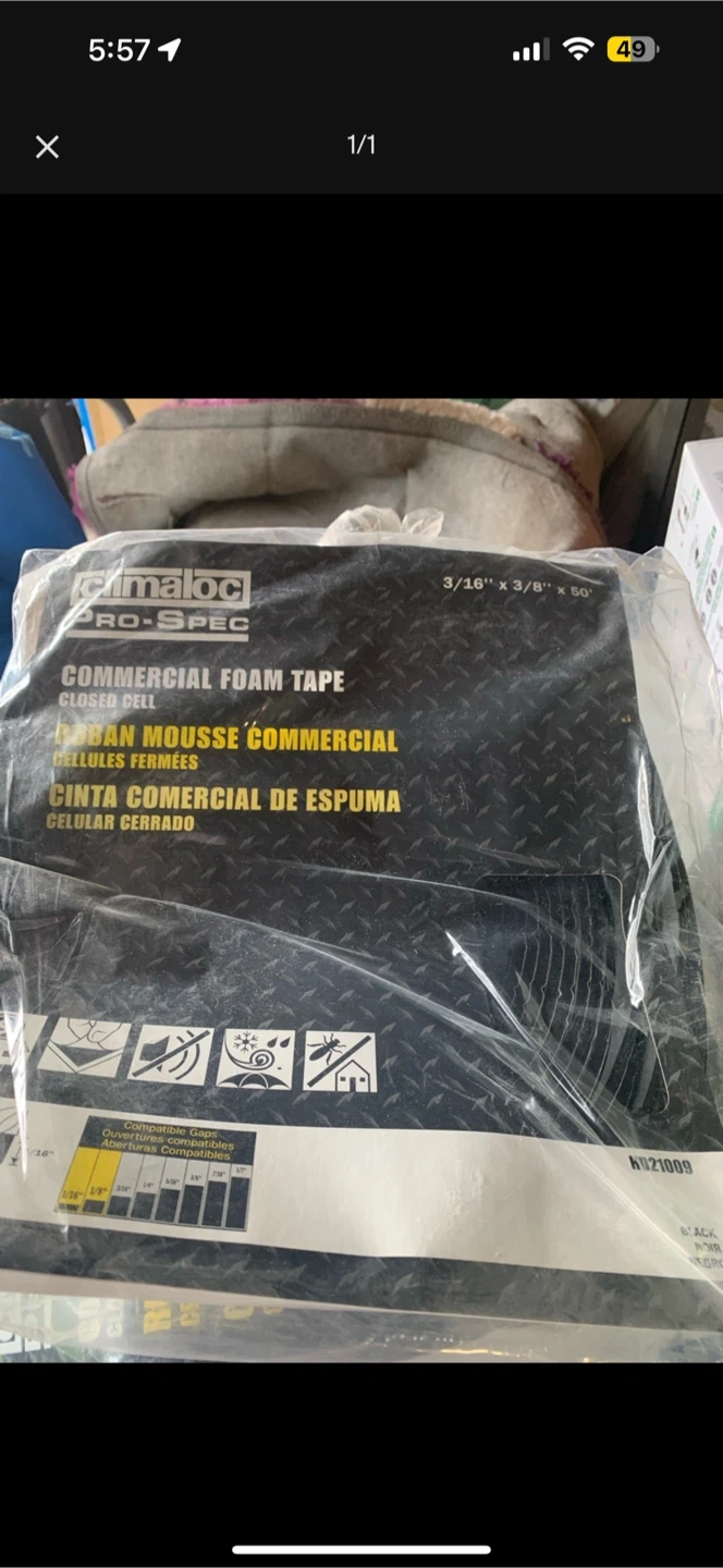 Selling a roll of Climaloc Pro-Spec commercial foam tape. It's closed cell and measures 3/16" x 3/8" x 50'. Great for sealing gaps and openings! $10 OBO Check out my other listings and bundle items!