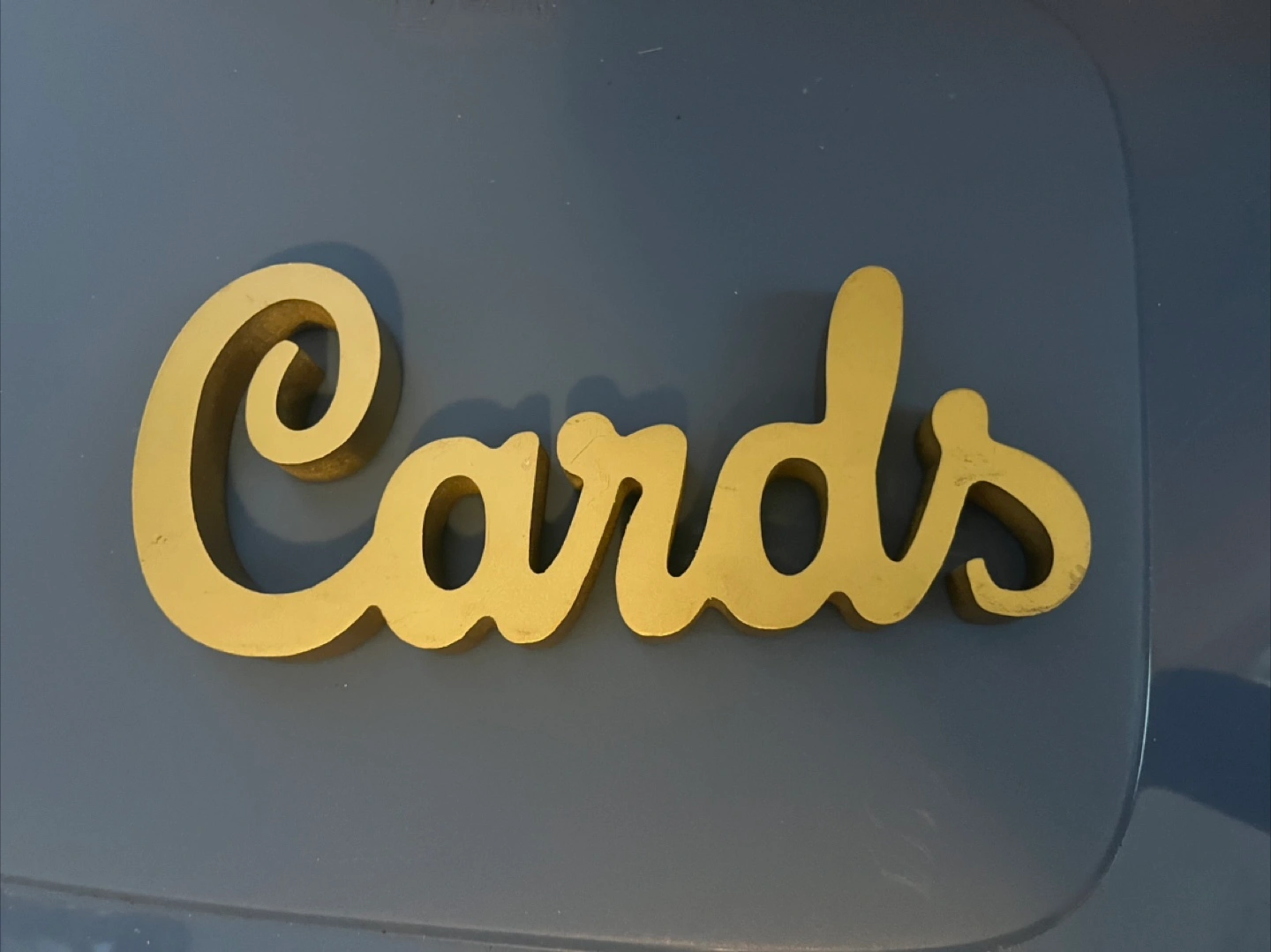 Selling a gold-coloured 'Cards' sign. It's perfect for adding a touch of elegance to any room or for a special event