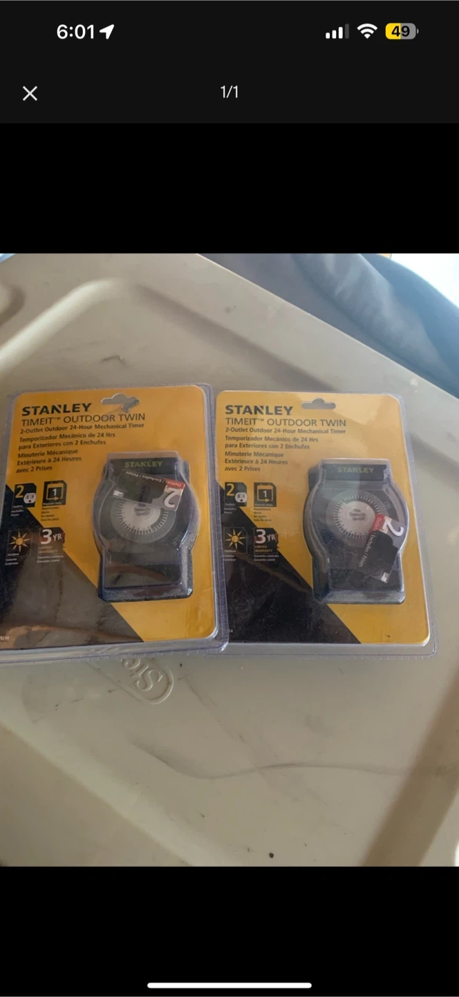 Selling two brand new Stanley TimeIT Outdoor Twin 2-Outlet 24-Hour Mechanical Timers! They're perfect for controlling your outdoor lights or decorations with ease. Never been used and still in the original packaging $20 OBO Check out my other listings and bundle items!