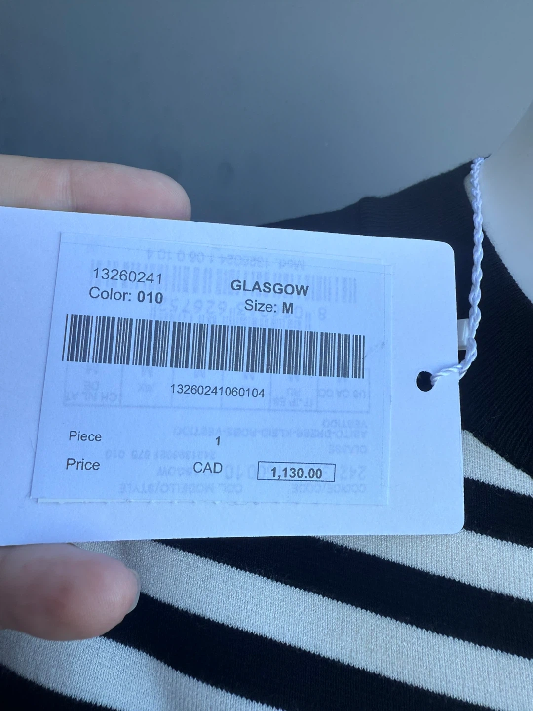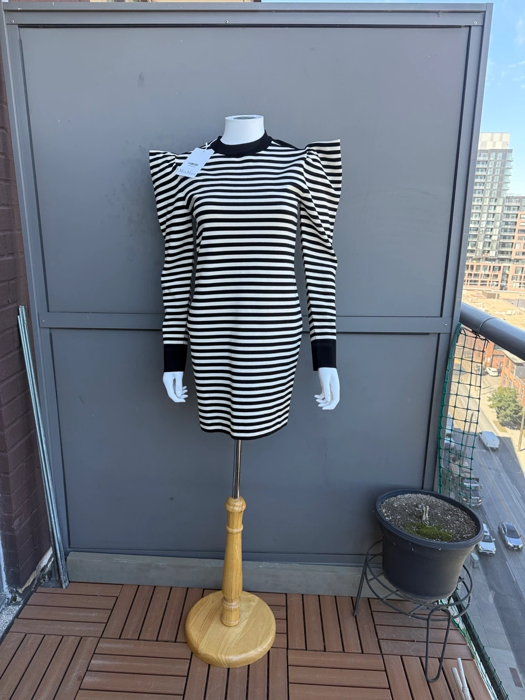 153Selling a Max Mara Glasgow dress in a stylish striped pattern. This dress is a size M and features a unique design. It was originally bought for $1,130.00 CAD. Perfect for adding a touch of sophistication to your wardrobe!